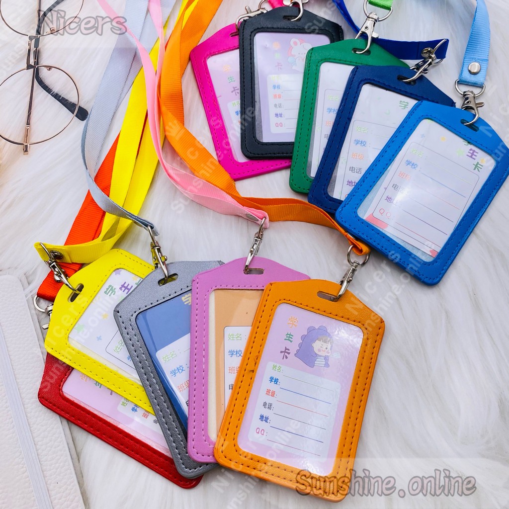 Plain Color 15mm ID Sling Holder Lanyards with Leather ID Card Holder