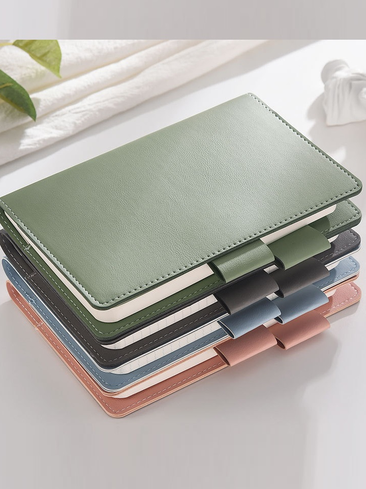 Plain Pastel Faux Leather A6 Journal Cover Jacket Slipcase wd Card and Pen Holder AND Bare Notebook