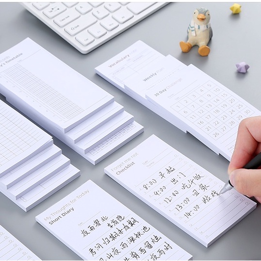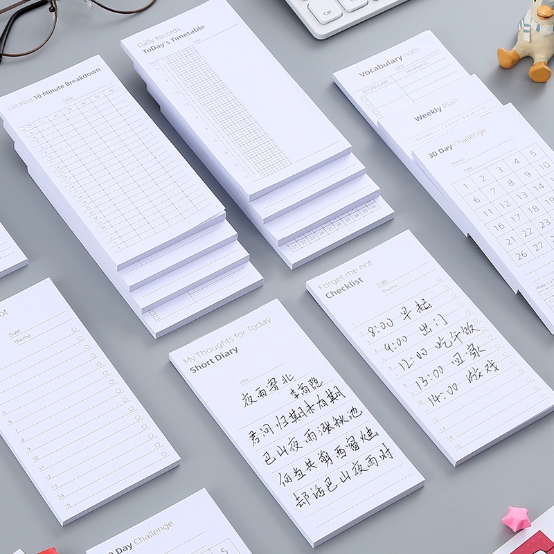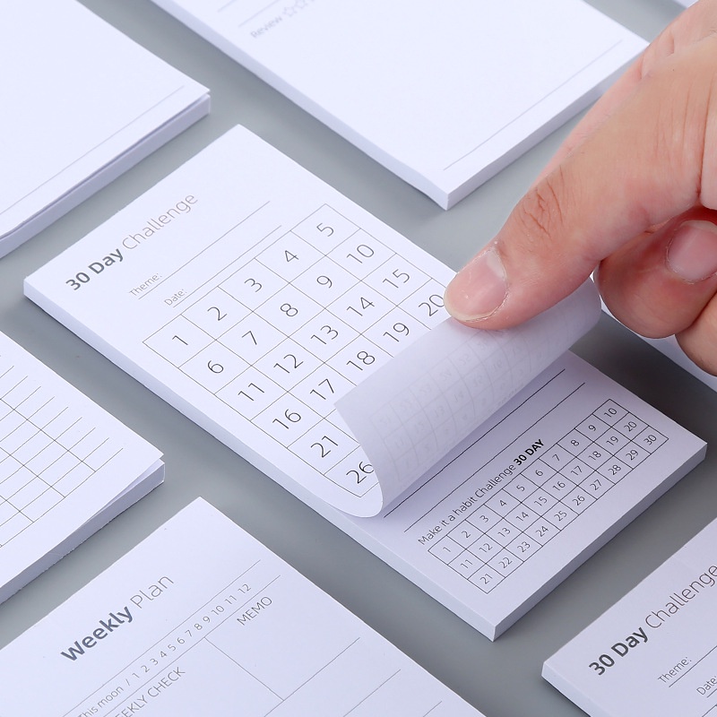 Plain White Non-stick Memo Note Pad Minute Day Challenge Journal Diary Daily Record Weekly Checklist