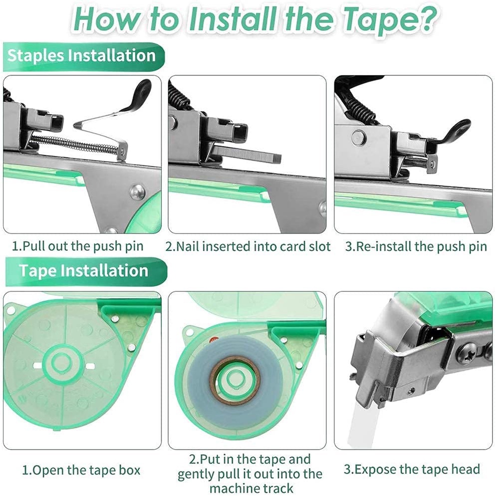 Plant Tying Machine Garden Plant Tapener Tool For Vegetables Grapes With 10 Rolls Of Tape+1 Box Nail
