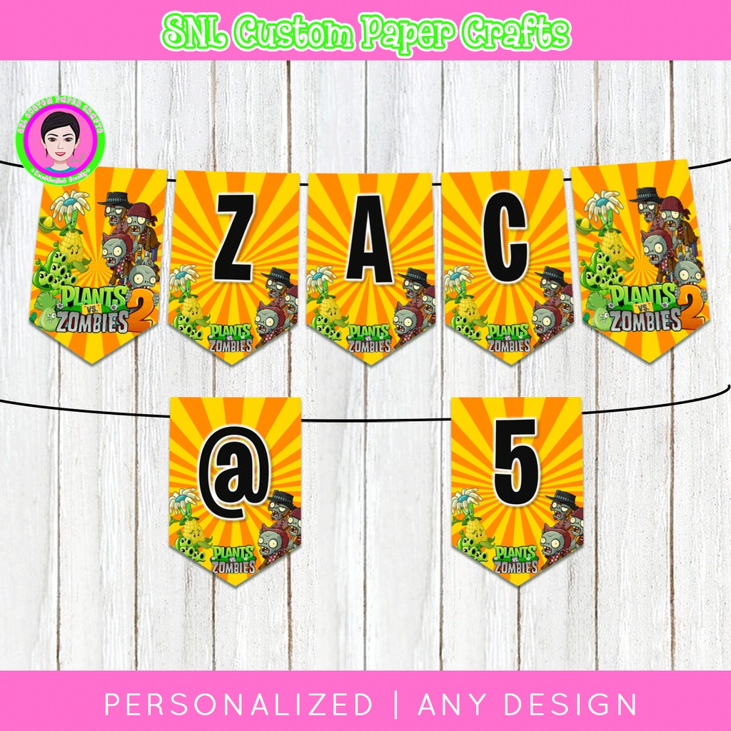 Plants Vs Zombies Banner Birthday Personalized Customized
