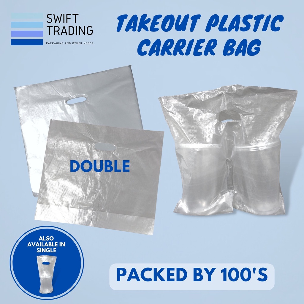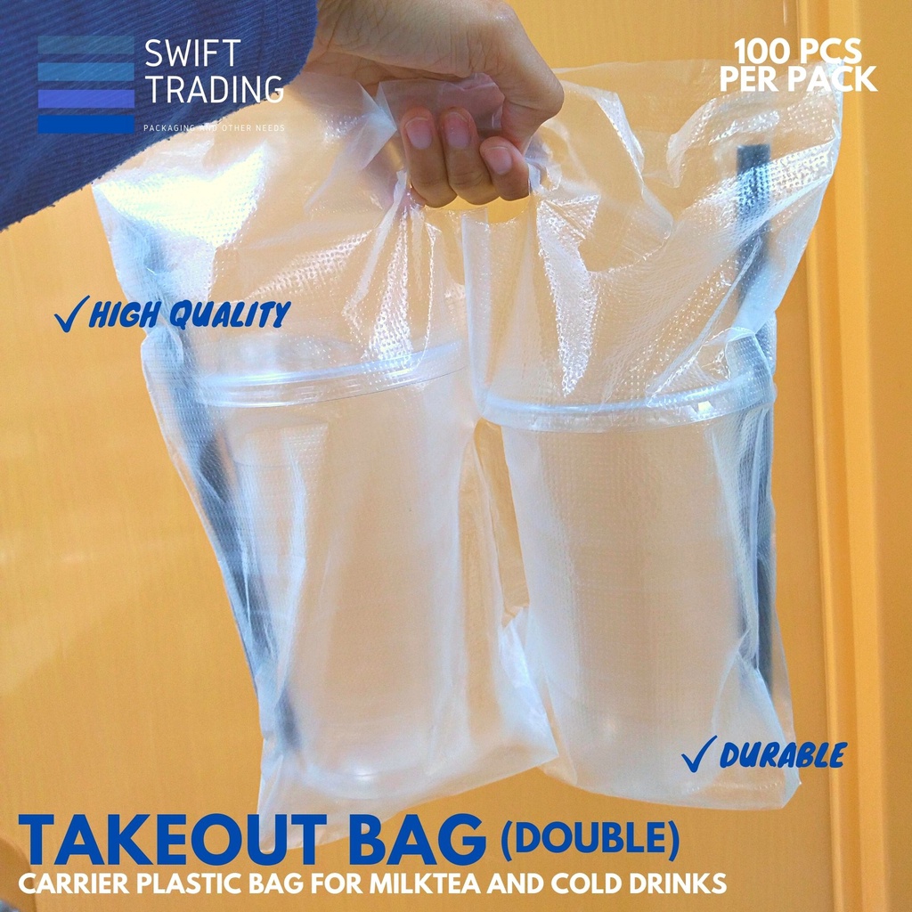 Plastic Carrier Bag - Take Out Plastic Bag for Milk Tea [Single or Double] 100pcs/pack
