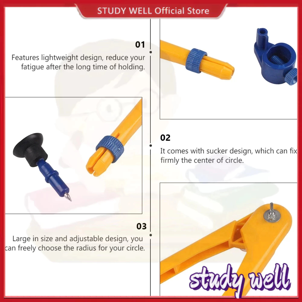 Plastic compass math teaching tool large geometry drawing compass chalk marker for school supplies