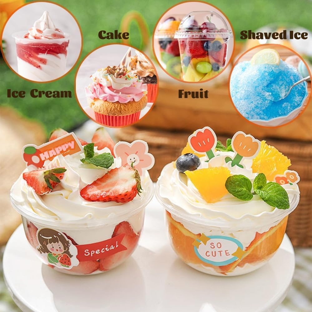 Plastic Dessert Cups with Lids Clear Dessert Plastic Container Mousse Cake Ice Cream Cup Disposable