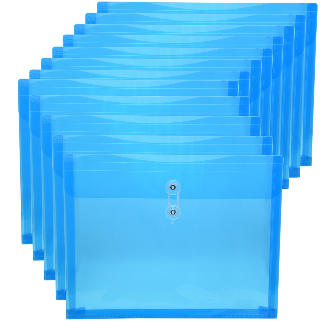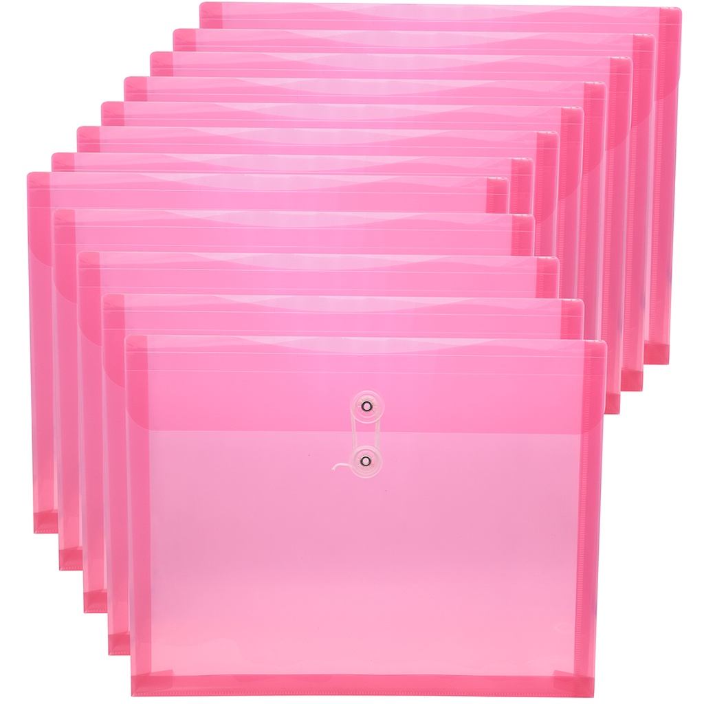 Plastic Envelopes with String Closure Clear Side Loading, 3cm Expansion, A4 Size, Set of 10