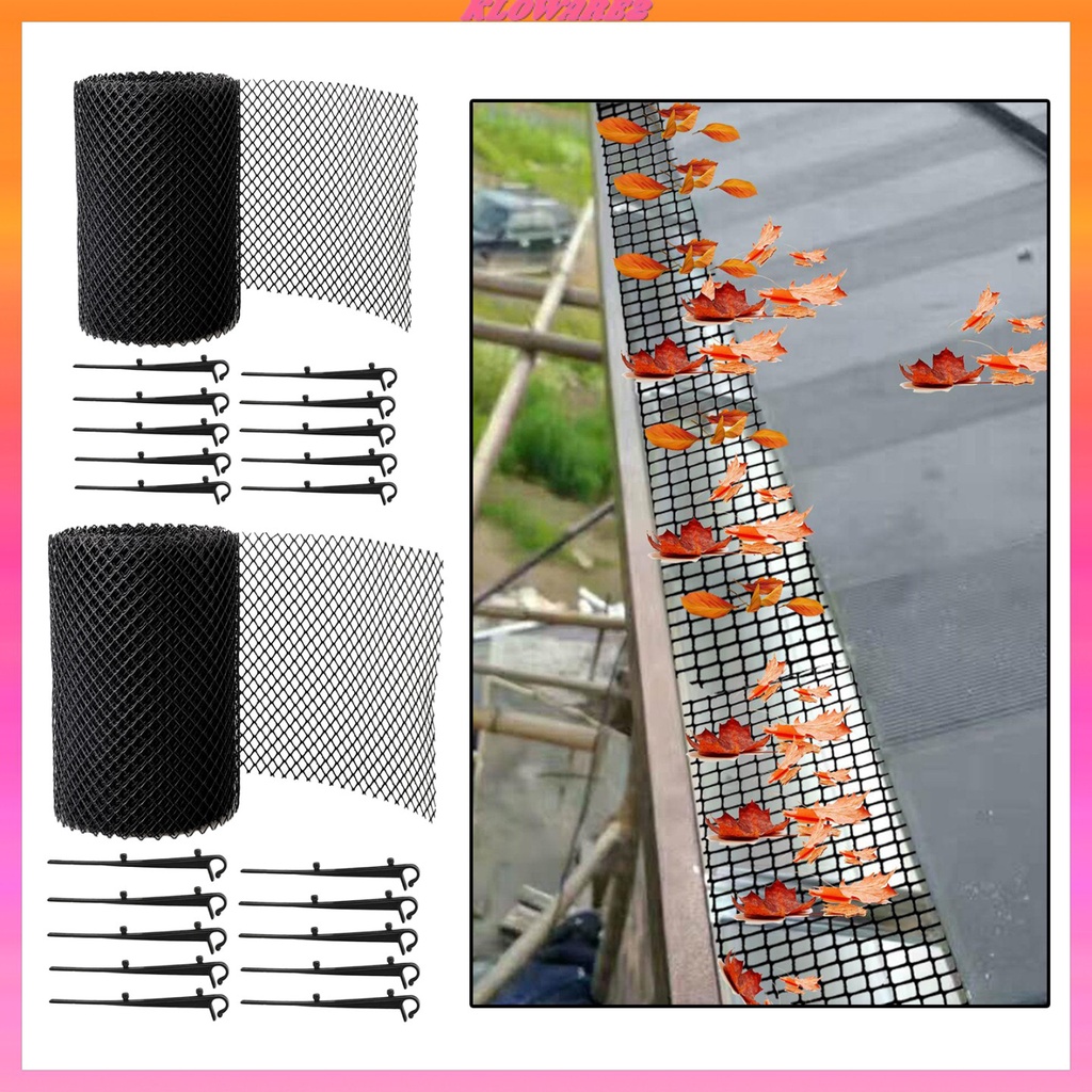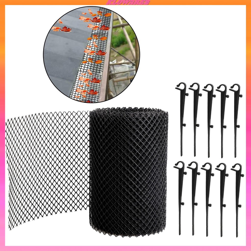 Plastic Gutter Guard Mesh Gutter Guard Roll Leaf Guard Splash Roof Sheet Black with 10 Fixing Hooks