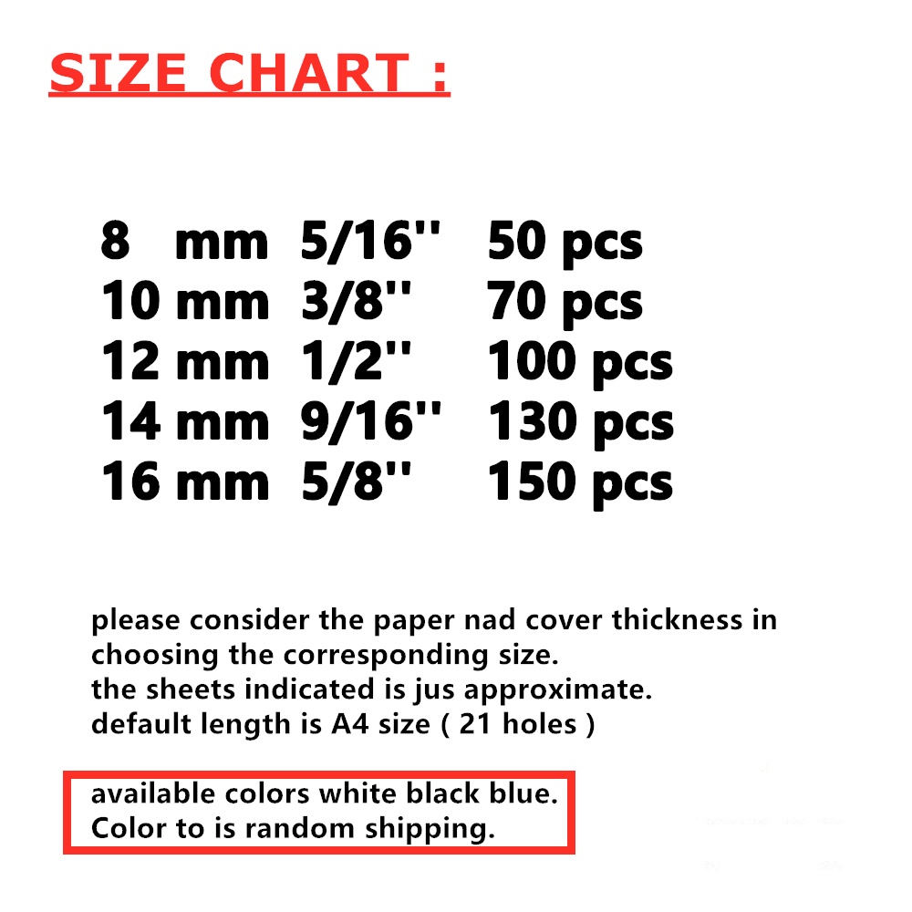 Plastic Ring Binder A4 Comb Binding 100pcs A4 Size 21 holes random Color