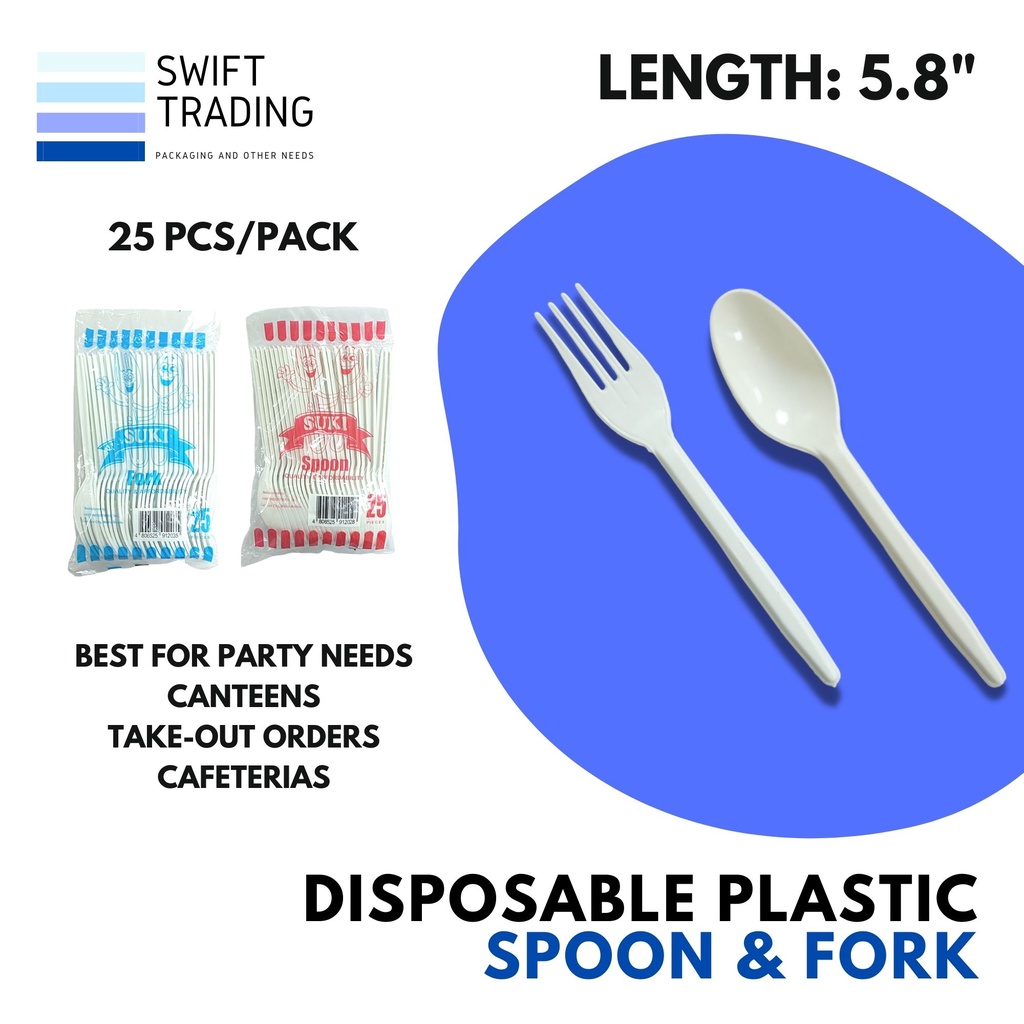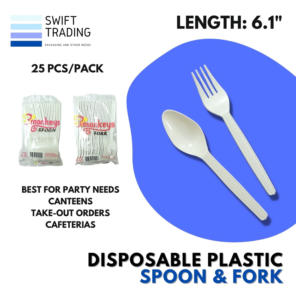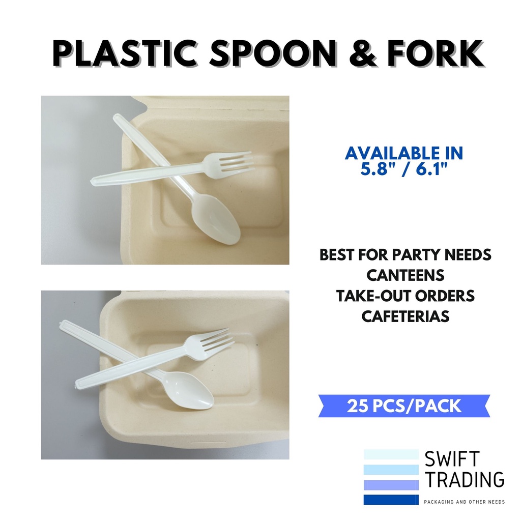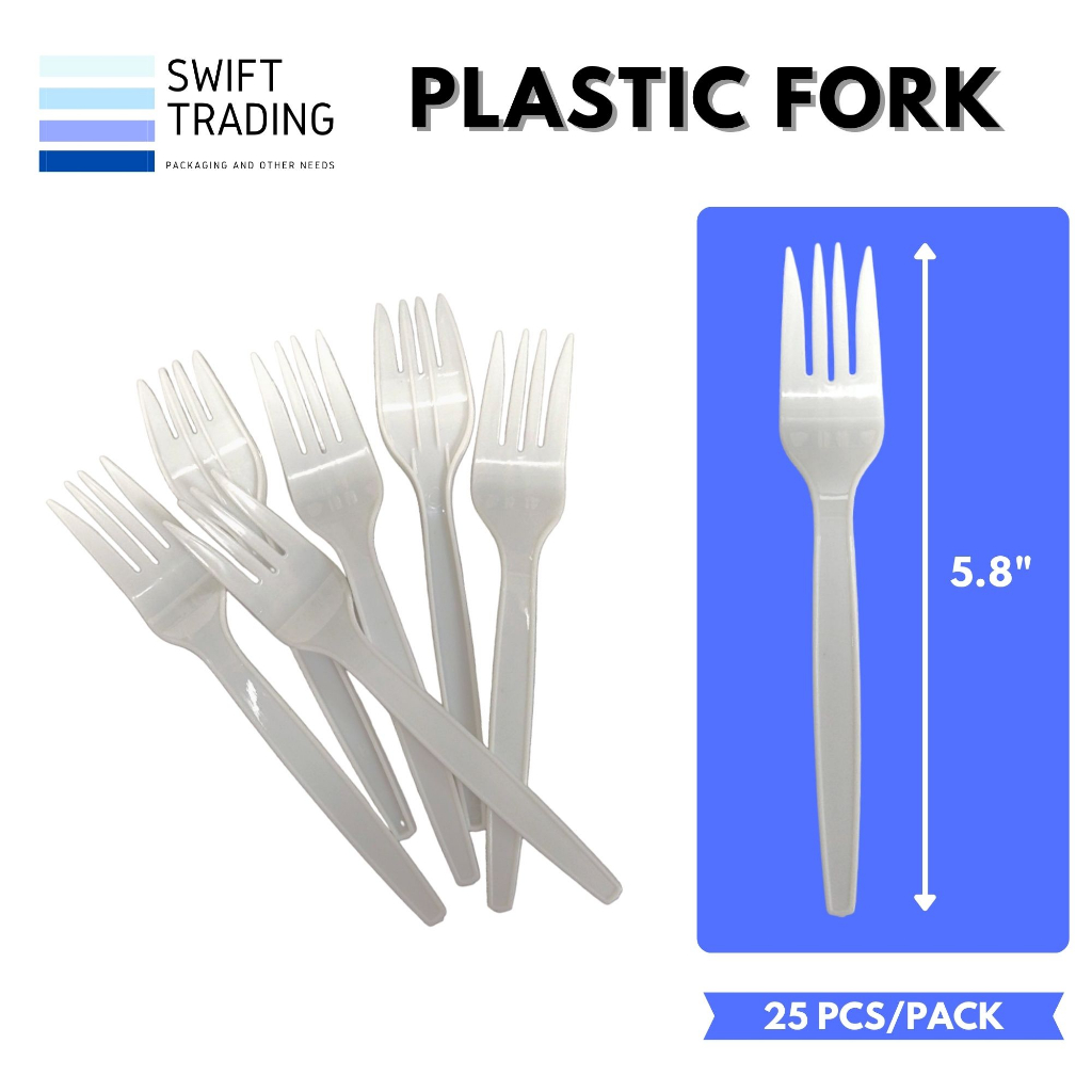Plastic Spoon & Fork ( 25pcs ) Spoon Fork Utensils [ 2 sizes/variant available ] White Disposable