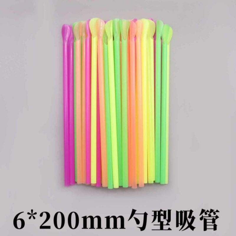 Plastic Straw Spoon Bar Slush Straw Colored Assorted 6mm 20cm100pcs