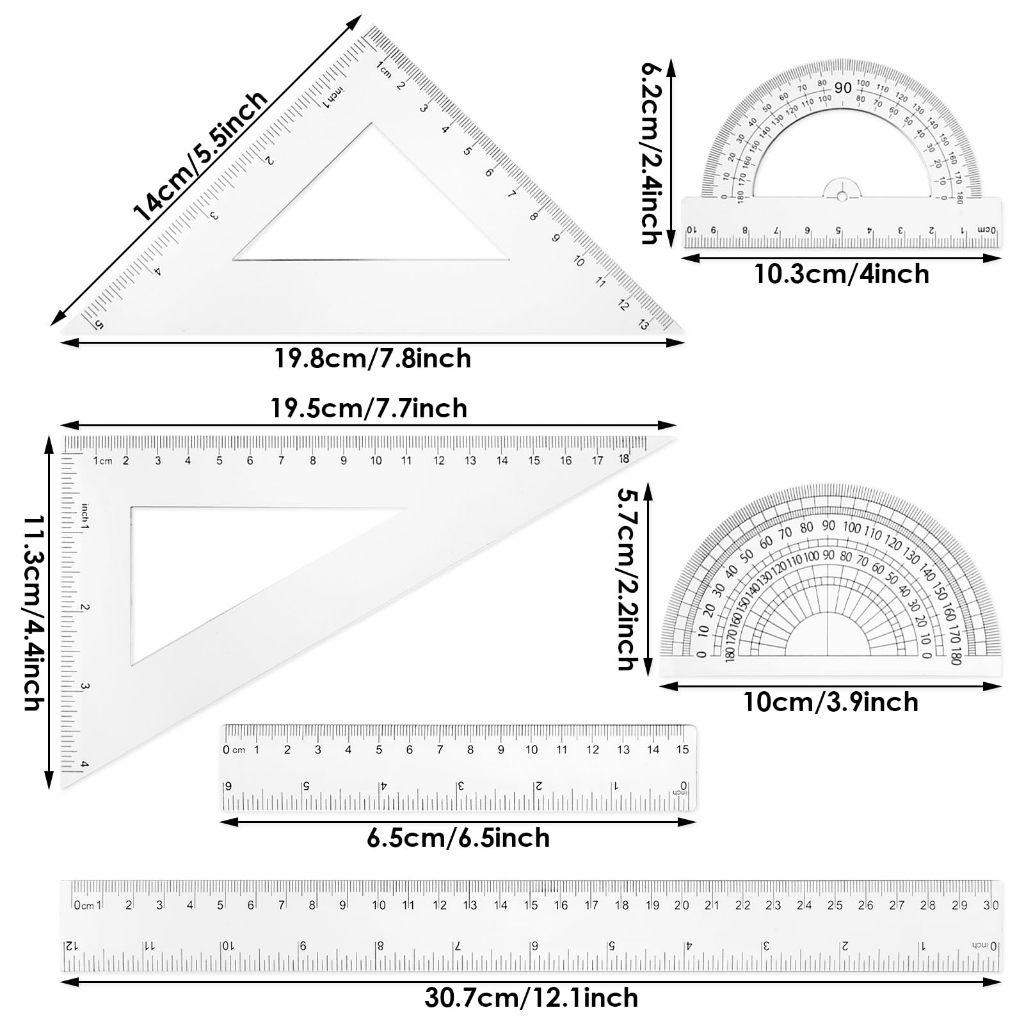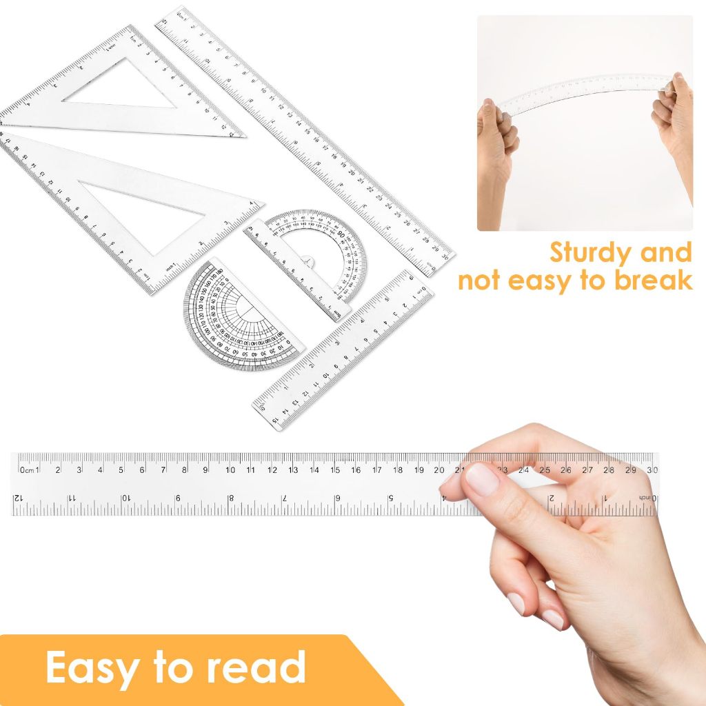 Plastic Transparent Ruler Clear Plastic Flexible Ruler Set for School Stationery Supplies Kids