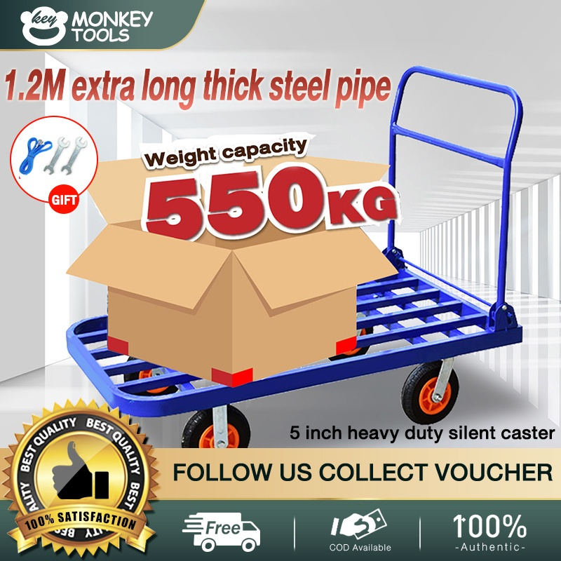 Platform Truck Hand Trolley Foldable Push Cart 550kg 120-cm x 65-cm platform,5-inch rubber wheels