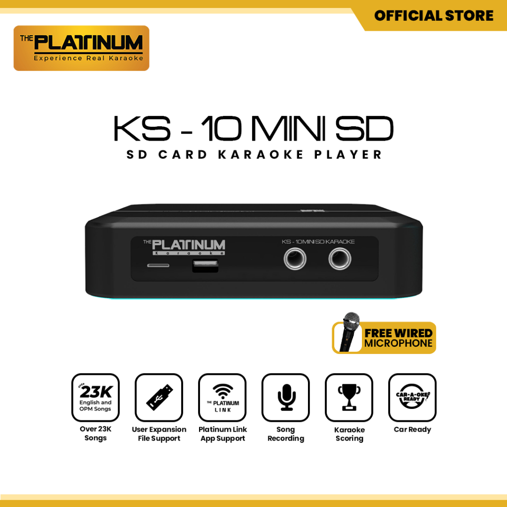 Platinum Karaoke KS10 Mini SD Player 23,000++ English and OPM Songs with Wired Microphone