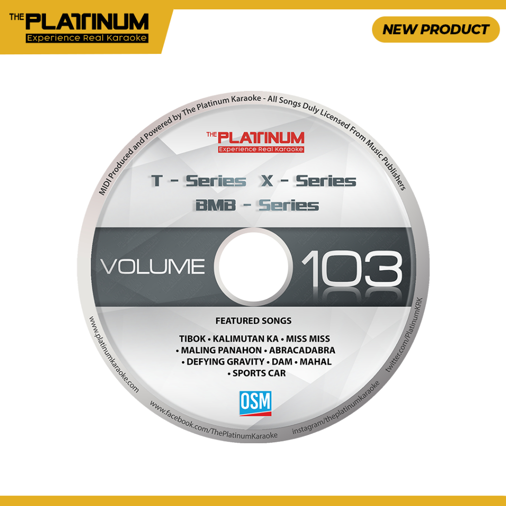 Platinum Karaoke Volume 103 CD for T-series/X-series/BMB-series