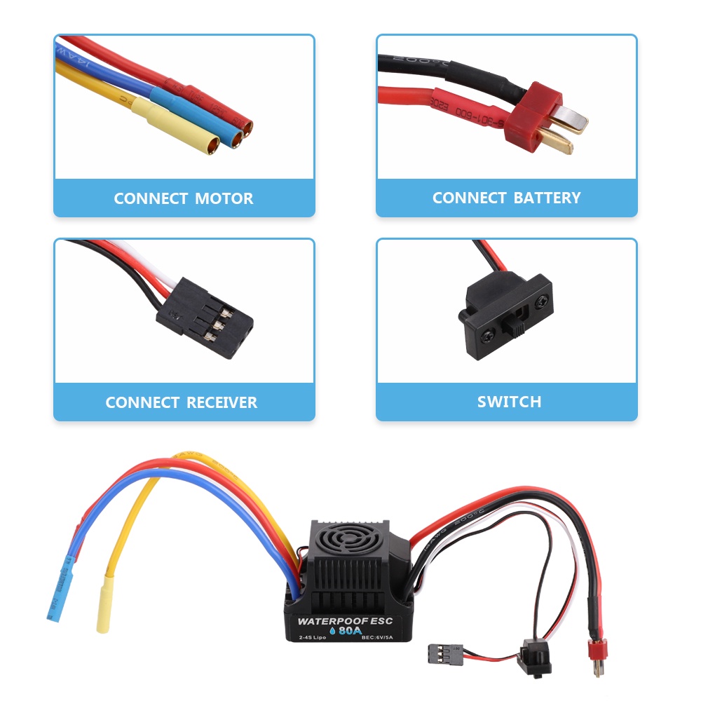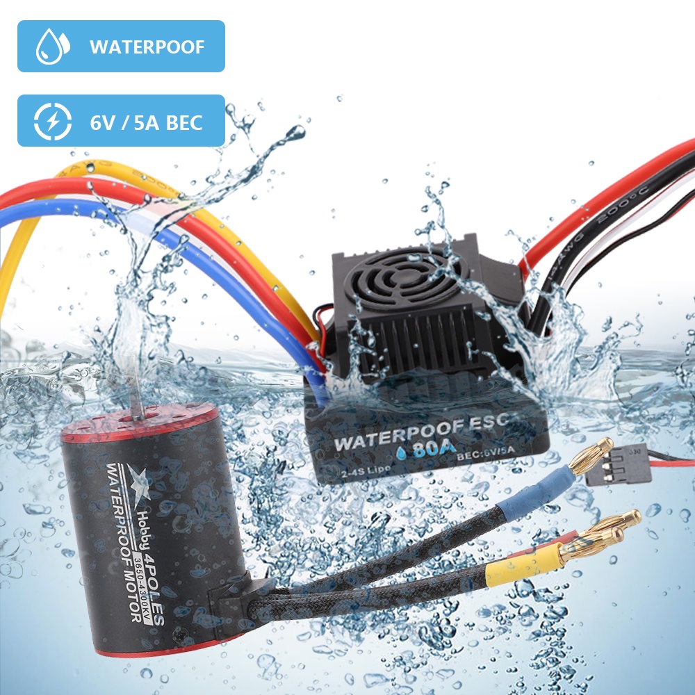 Platinum Waterproof 3650 2300kv 3100kv 3900kv 4300kv 5200kv Brushless Motor w/ 80A Brushless ESC Combo Set for 1/8 1/10 RC Car
