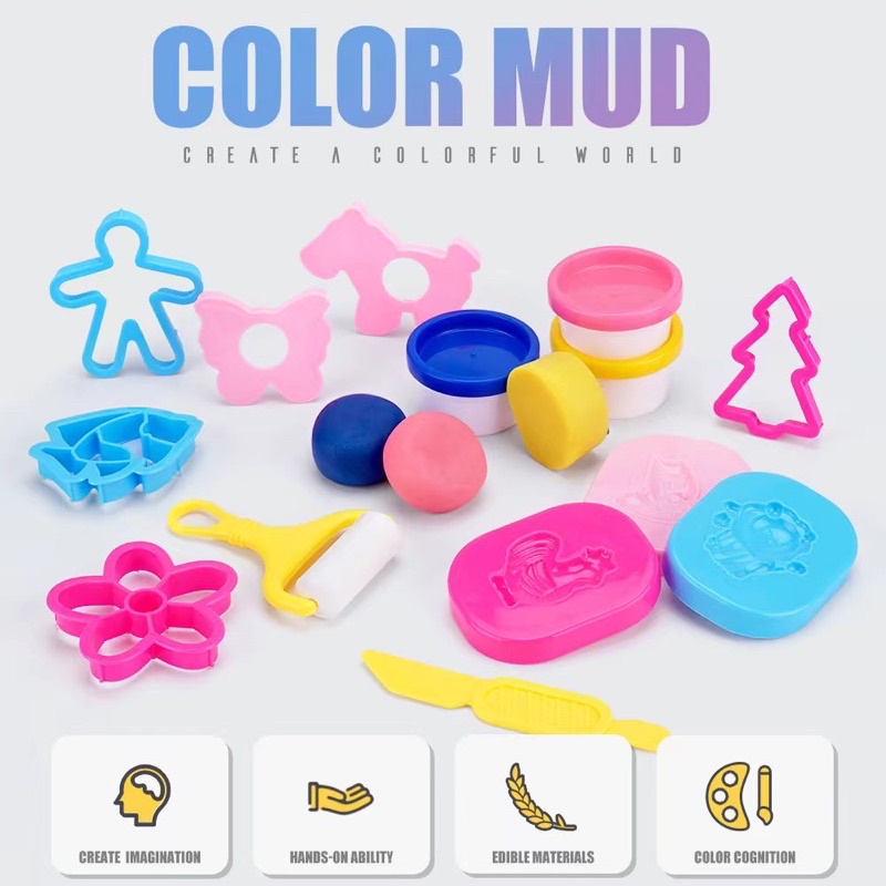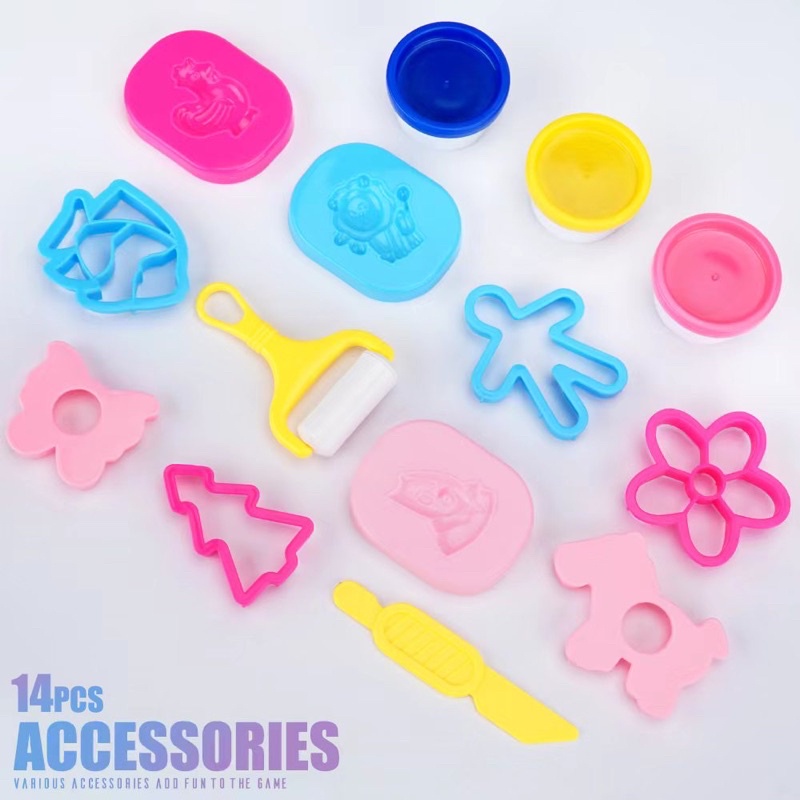 Play Clay Set w/ 3Assorted Color Clays And 14pcs accessories Children Learning Play Set Trending Toy