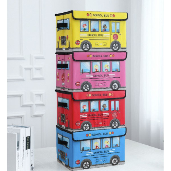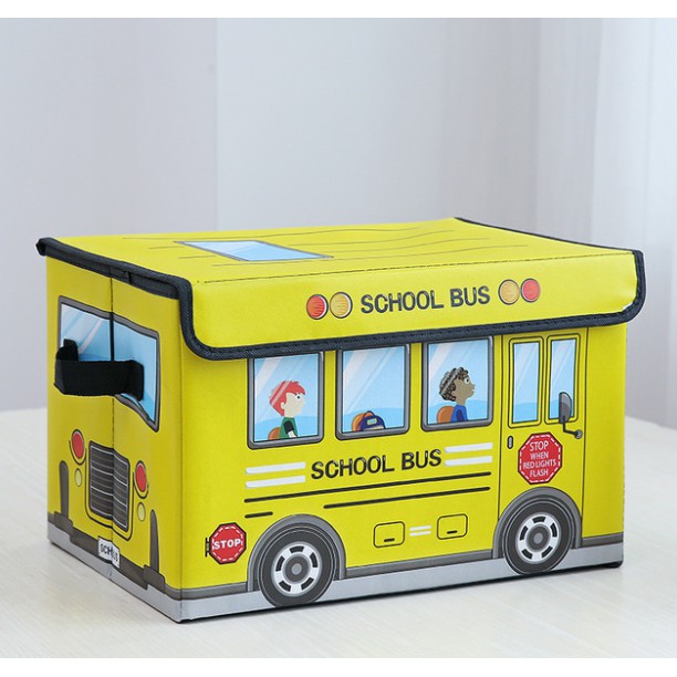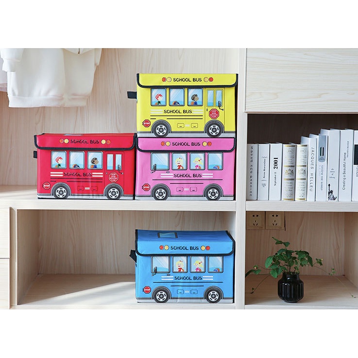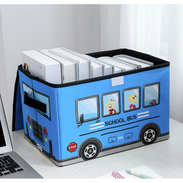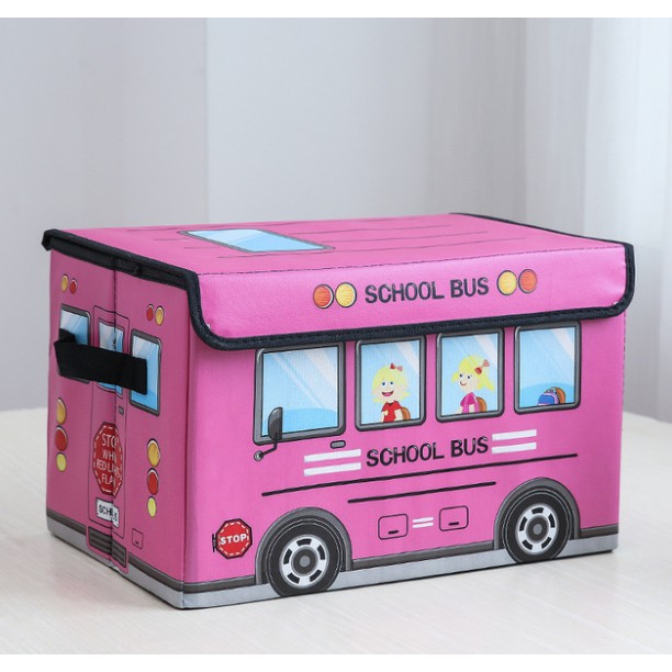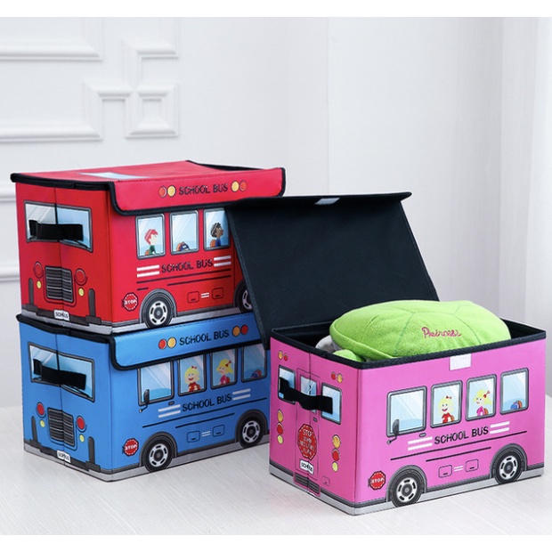 Play and Store PU Leather Kids Bus Foldable Storage Organizer Toy Storage Box with Cover