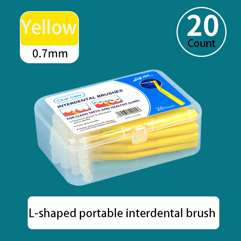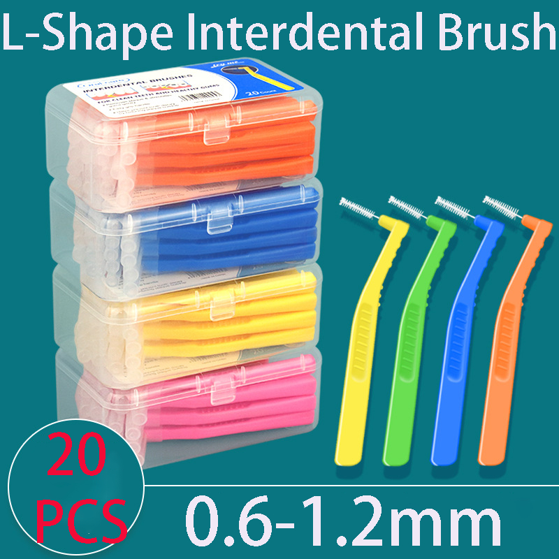 20Pcs/Box L-Shape Interdental Brush Soft Orthodontic Toothbrush 0.6-1.2MM Portable Reusable for Kids Adults Teeth Braces Oral Care