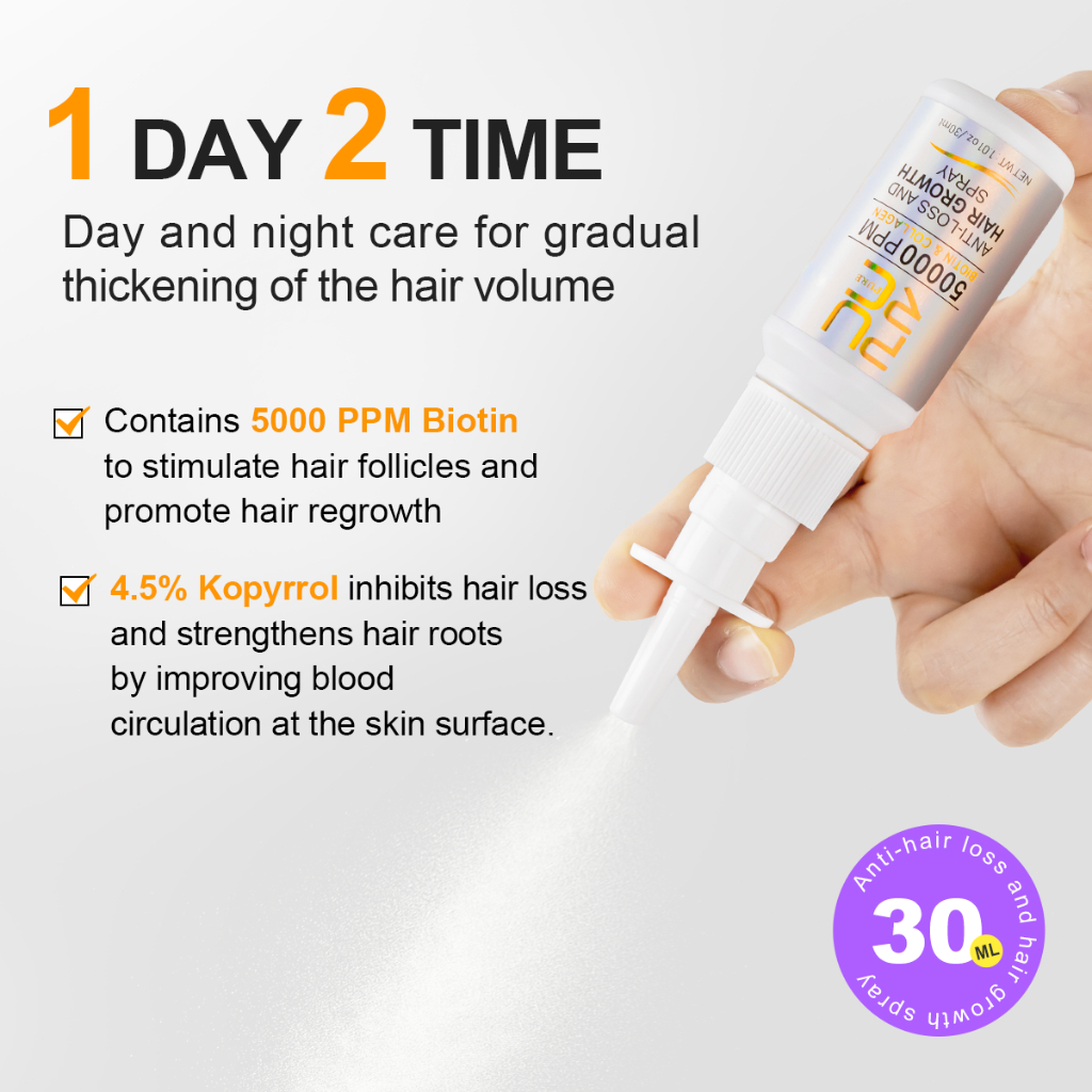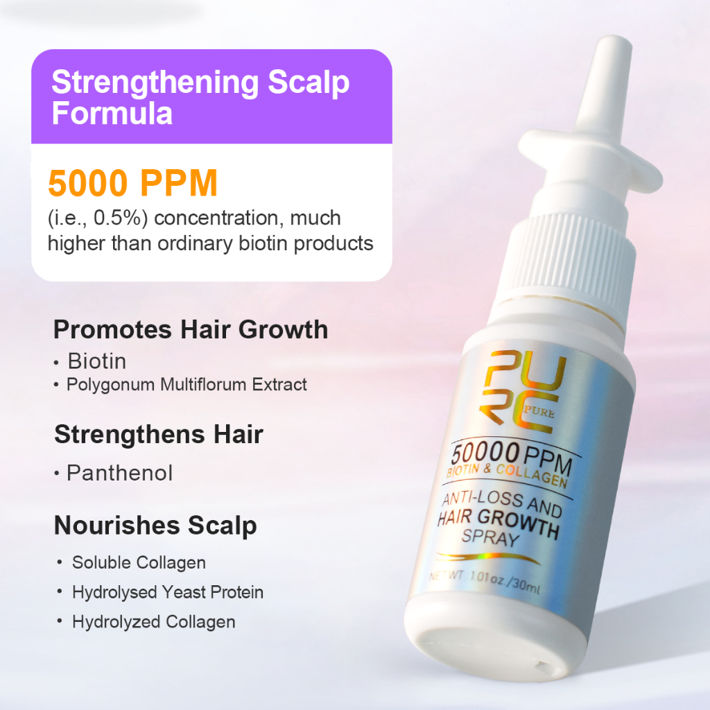 PURC Biotin Hair Growth Serum Spray Hair Loss Treatment Collagen Prevention of Gray Hair Care 30ml