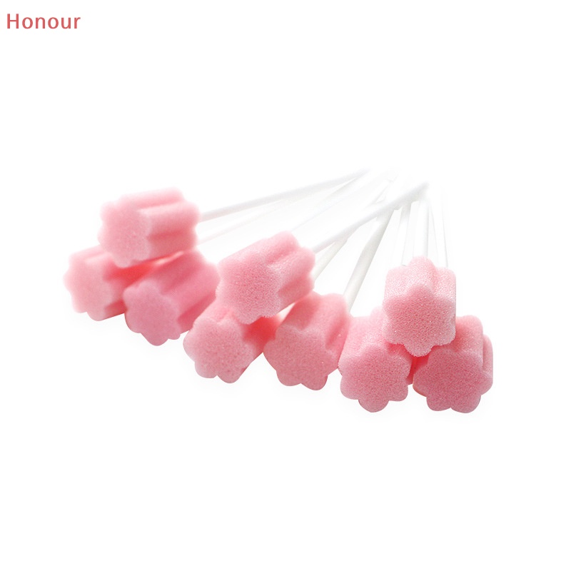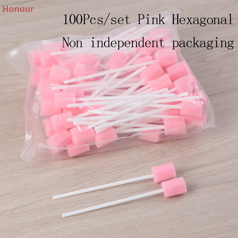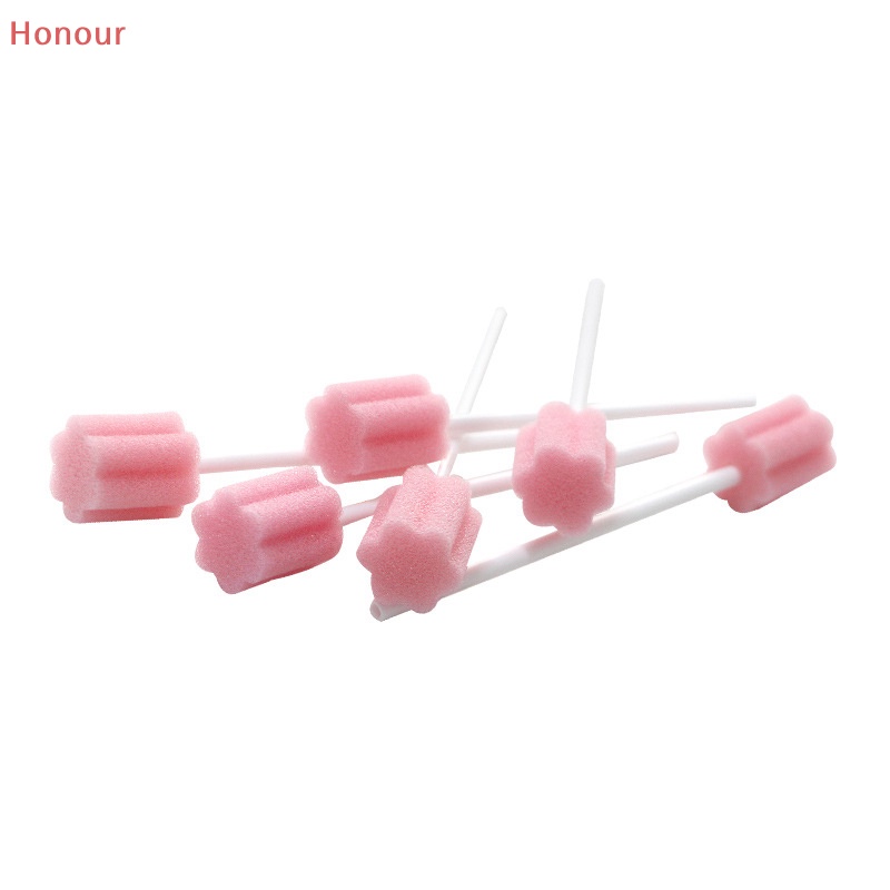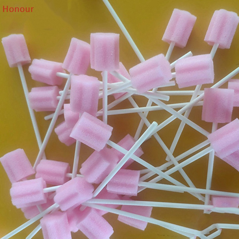 [Honour] 100pcs Disposable Oral Care Sponge Tooth Cleaning Mouth Swabs With Stick