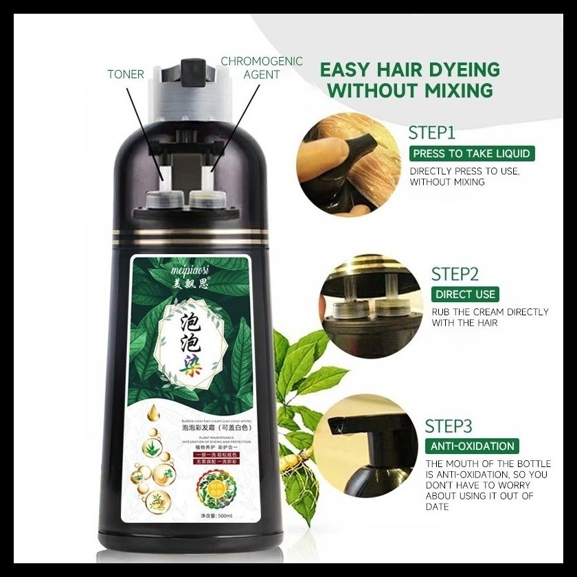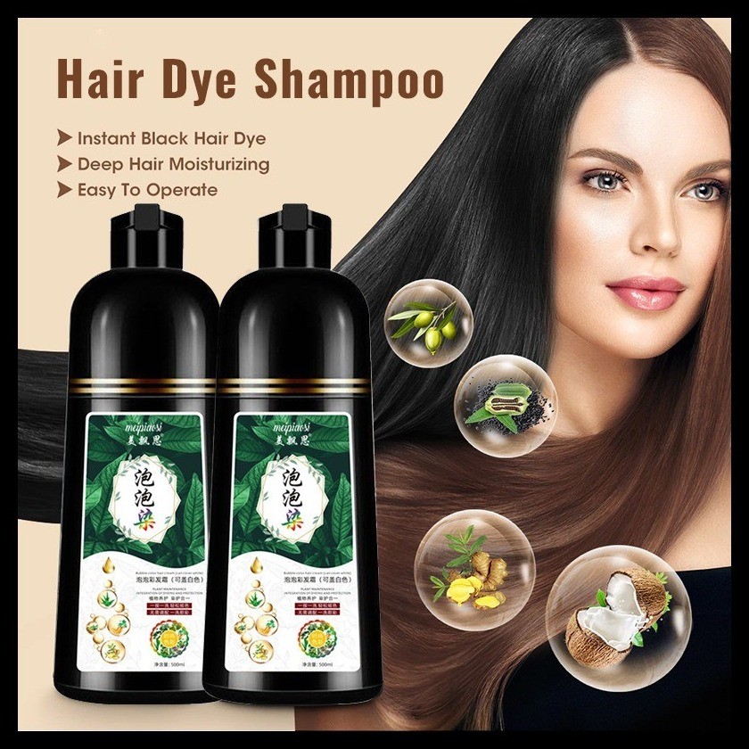 500ml Hair Dye Shampoo Permanent Color Household Herba Black Dye Shampoo Nature Without Stimulat