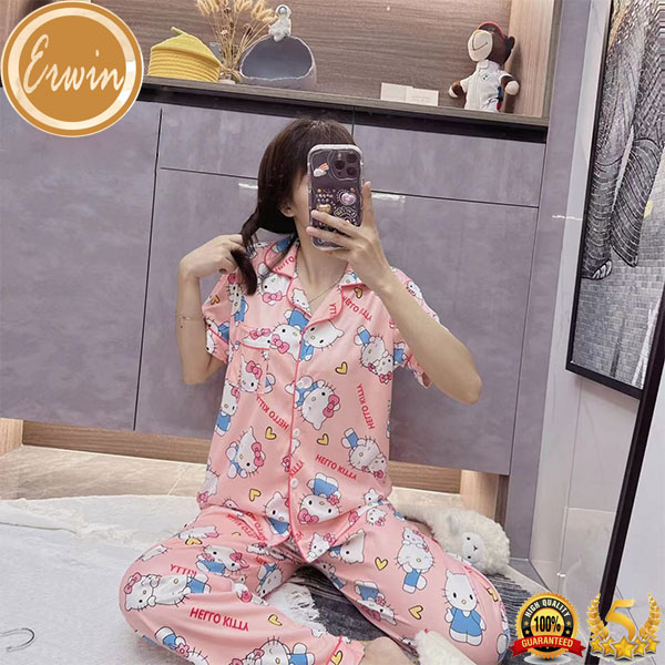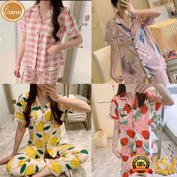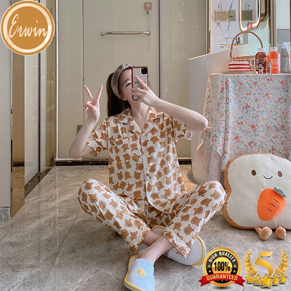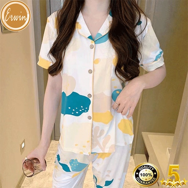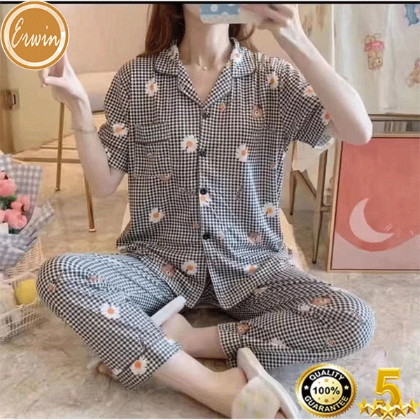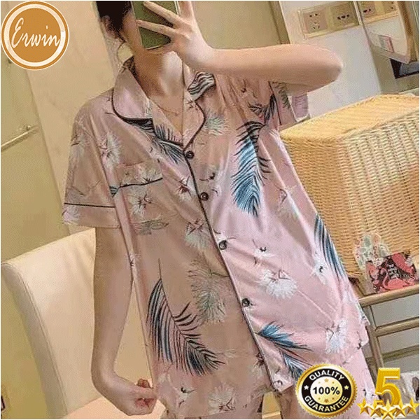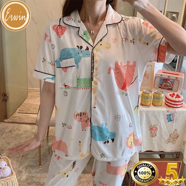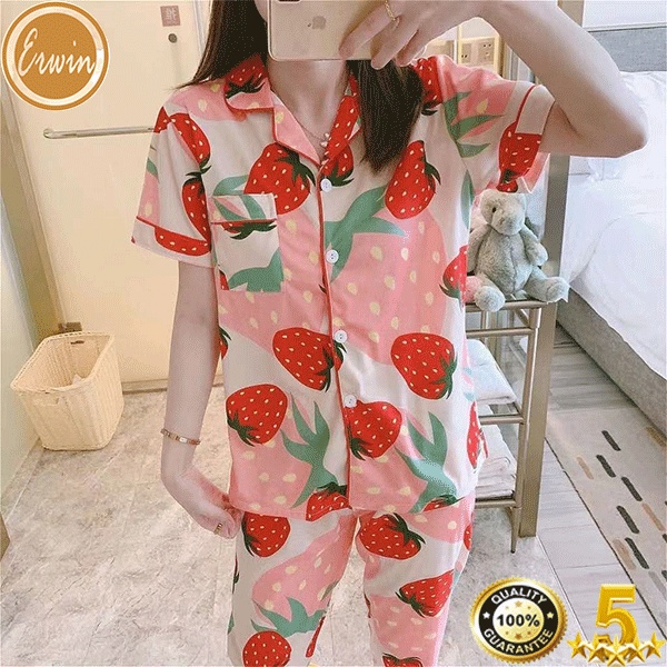 Pajama women Korean cute cotton printed pajama terno sleepwear casual home short sleeve pajama