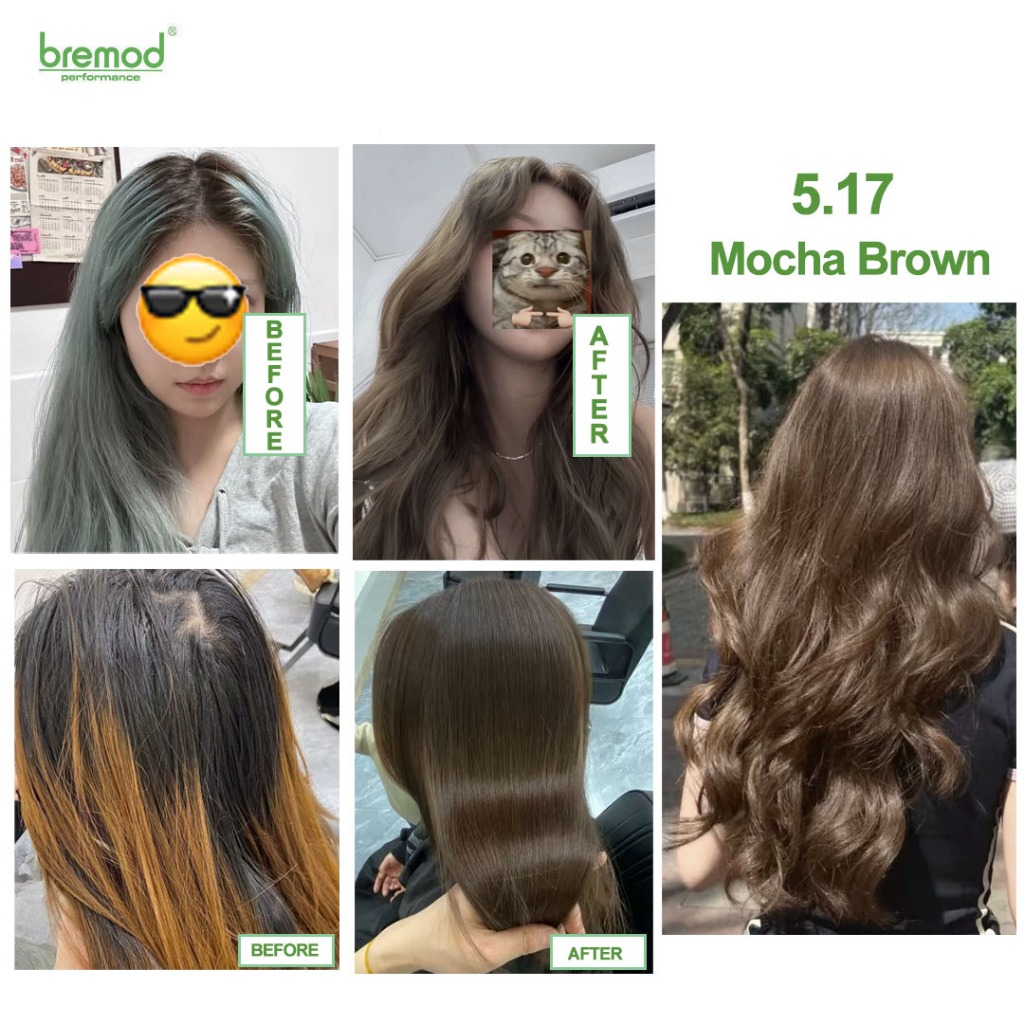 (HOT) Bremod Hair Color Mocha Brown 5.17 Oxidizing Natural Dye Cream Superplex NO BLEACH