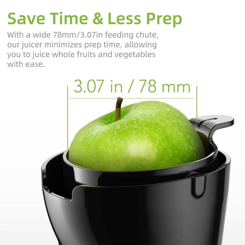 BioloMix Cold Press Whole Slow Juicer with 78mm Large Feed Chute, Juice Extractor Fits Whole Fruits 200W 40-65RPM Powerful Motor Low Speed Masticating