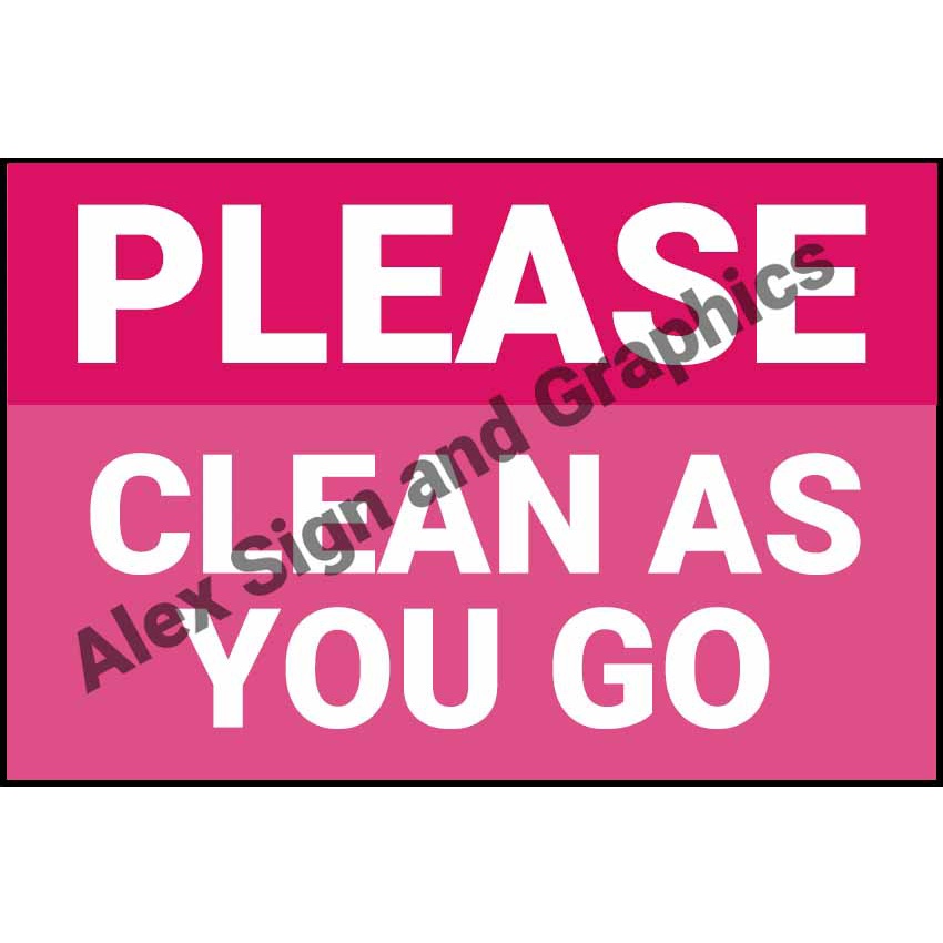 Please Clean as You Go PVC Signage (pink) - A4 Size (7.5 x 11.25 inches)
