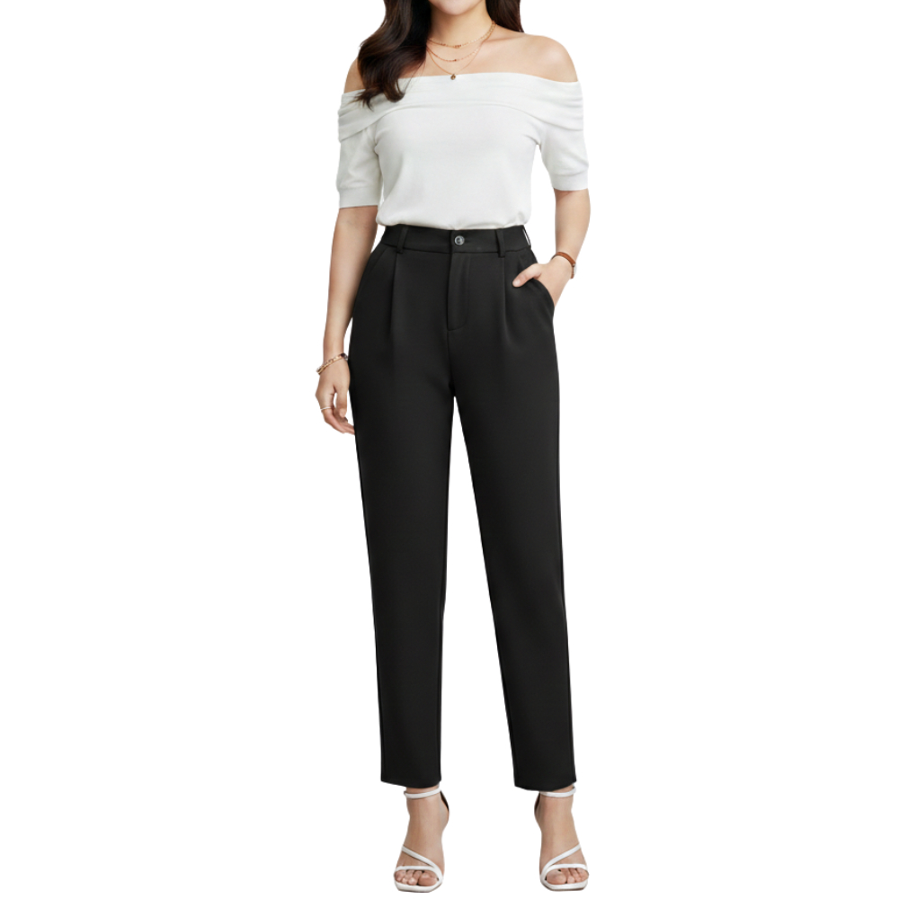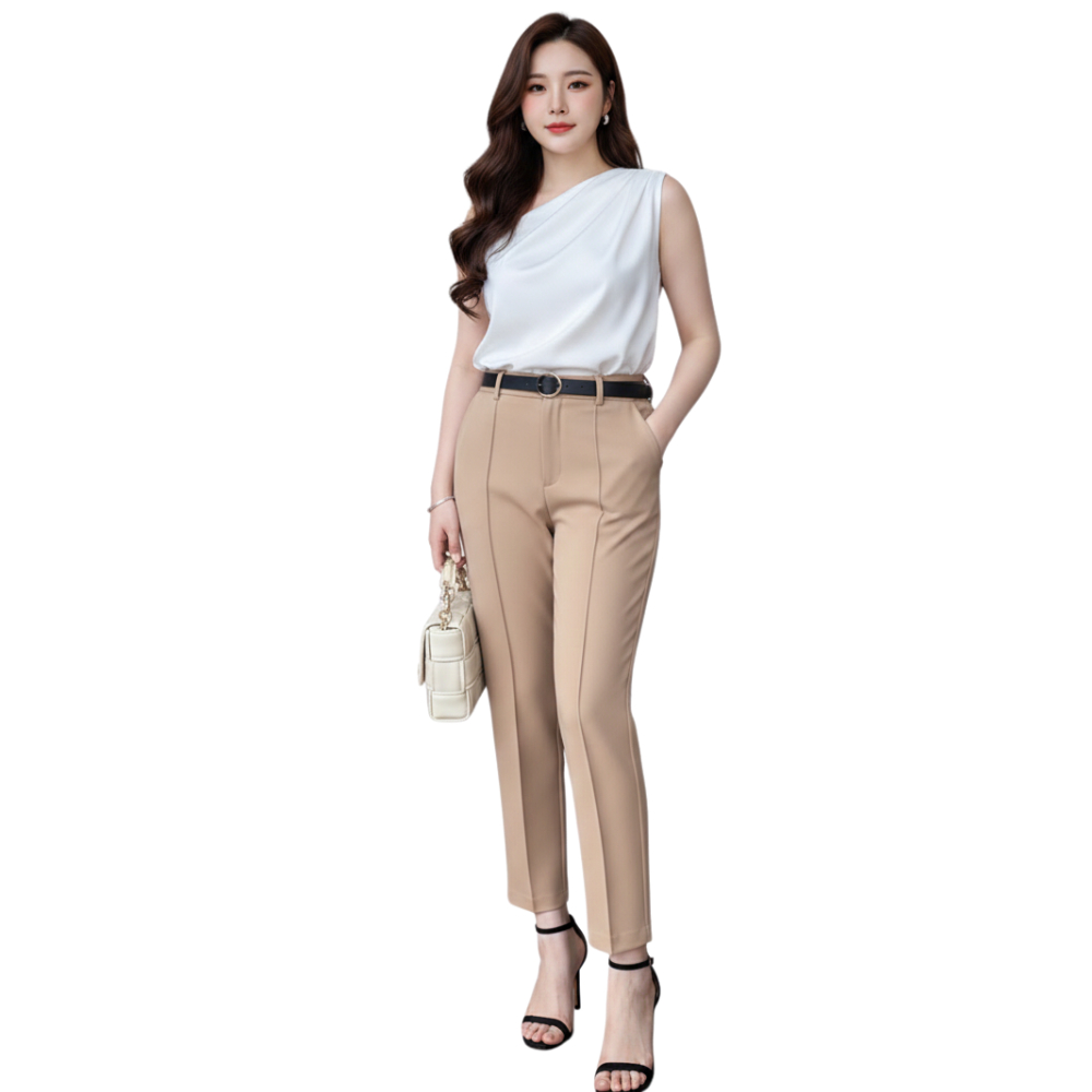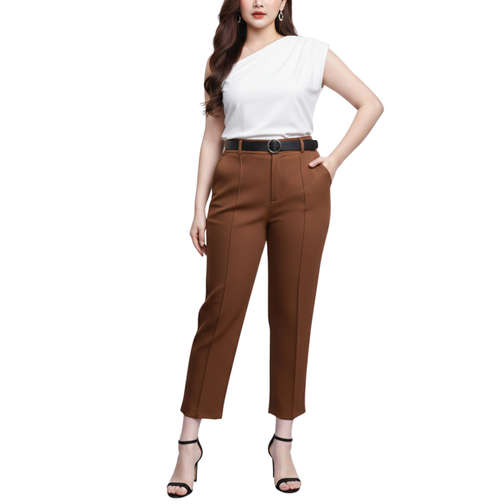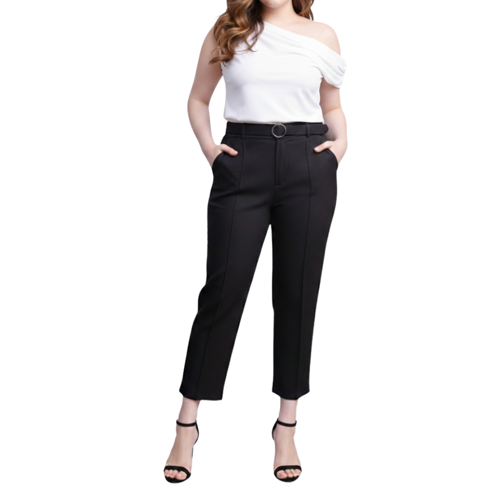 Plus Size High Waist Slacks Trouser Pants With Belt Slim-Fit Garter Waist #225-1 | #341-1