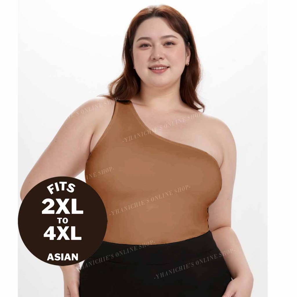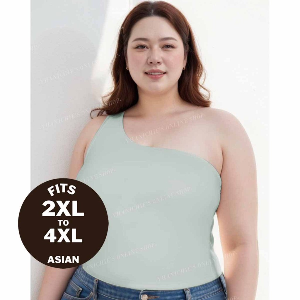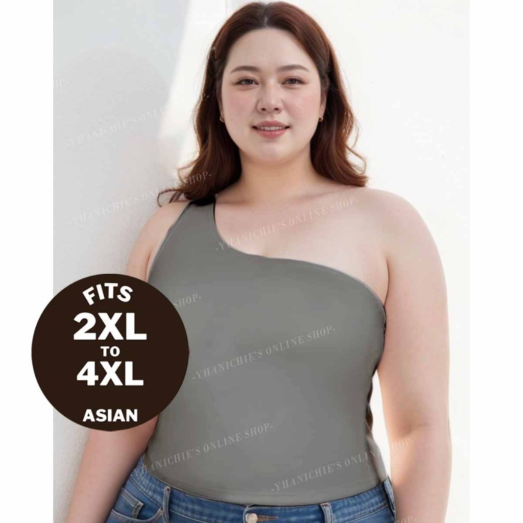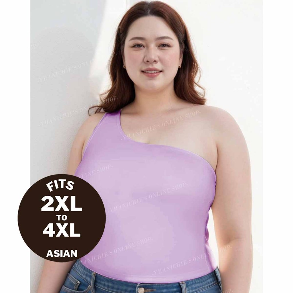 Plus Size One Shoulder Sando Top – Off-Shoulder, Stretch Cotton Spandex, 2XL-4XL