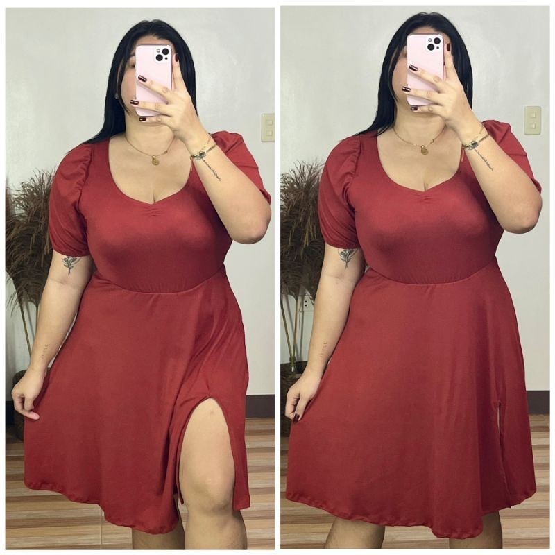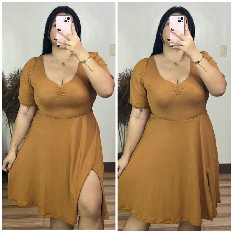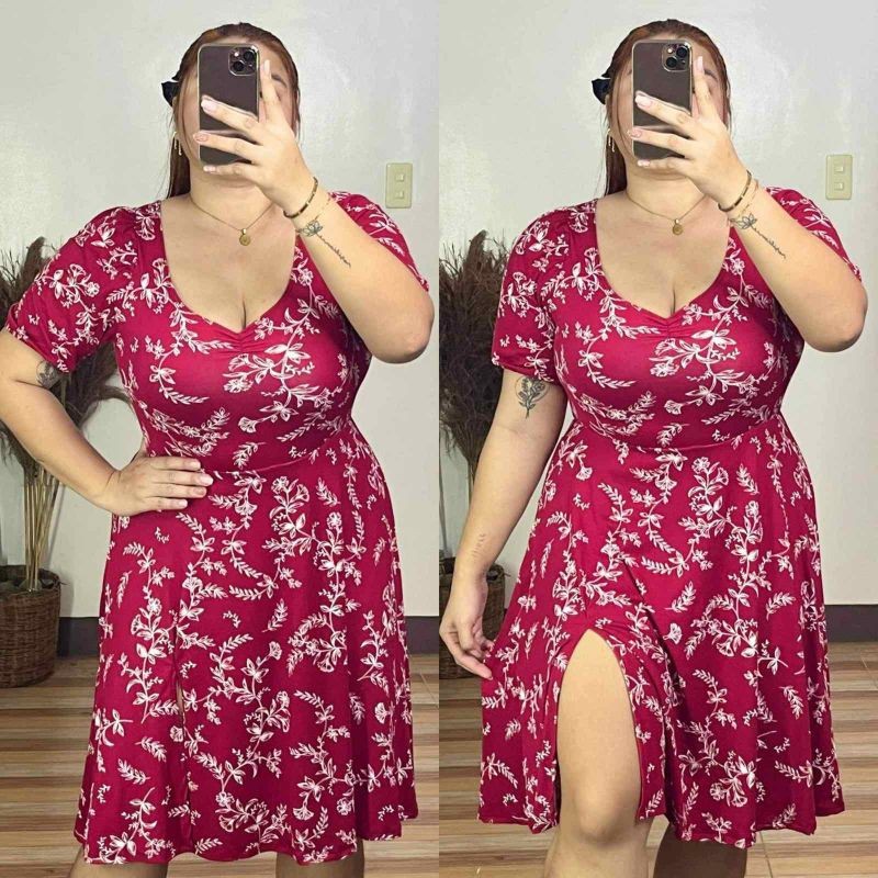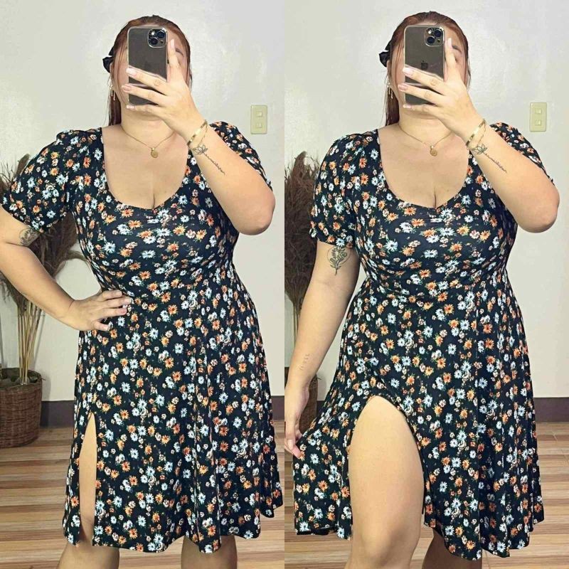 Plus Size Rhea Rutched Floral Slit Dress (Garter waist)