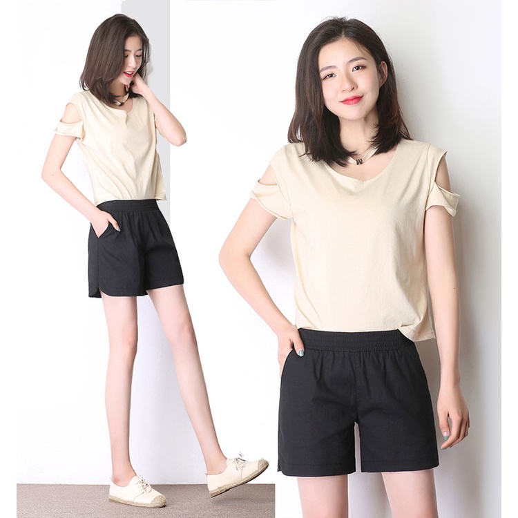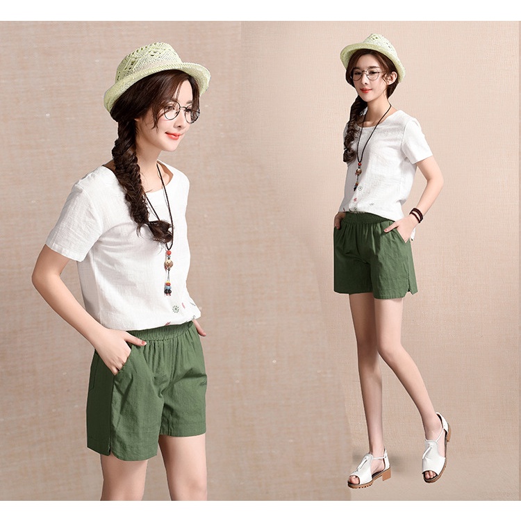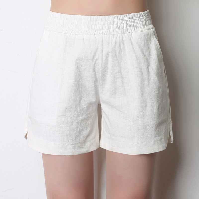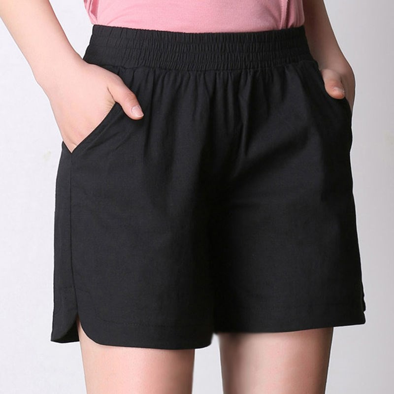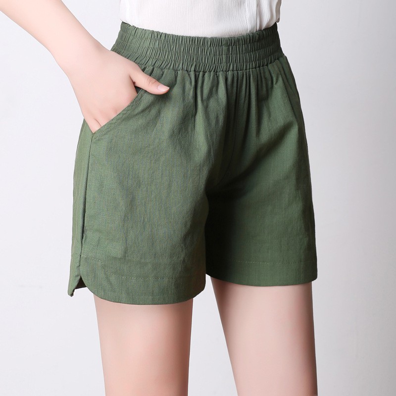 Ready stock!!!Shorts For Women Cotton Linen Shorts Elastic Waist Candy Color Wide Leg Shorts 4XL