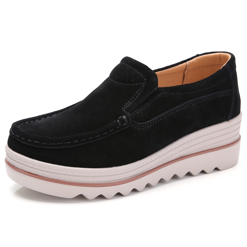 Plus Size Thick-Soled Women's Suede Leather Wedge Heel Sneakers Ladies Comfortable Casual Shoes Round Toe Cover Wear Shoes 35-42