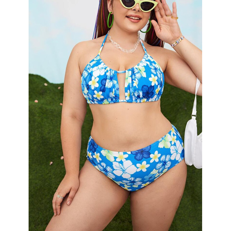 Plus Size Two Piece Bikini Set Floral Print Swimsuit 0XL