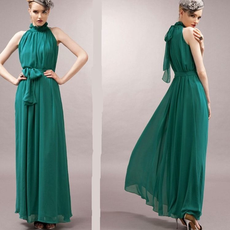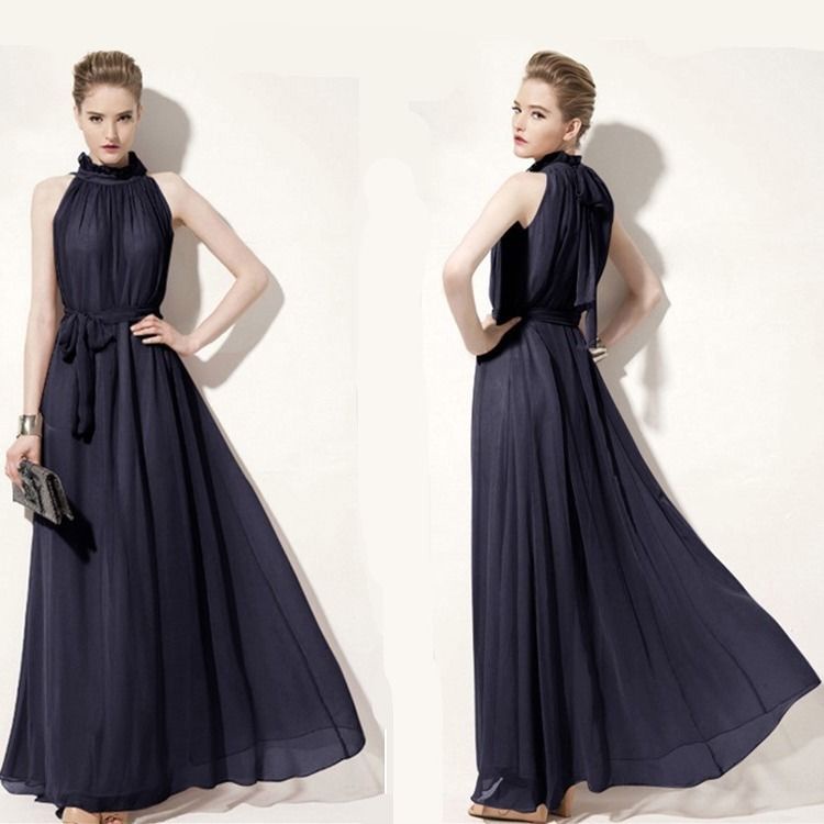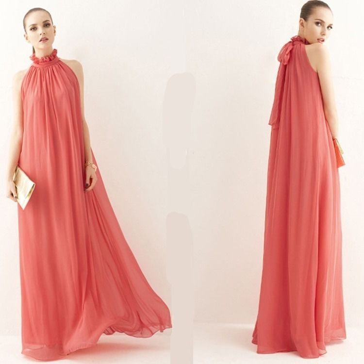 Plus Size Women's Clothing Fat MM Bohemian Halter Neck Stand-Up Collar Chiffon Dress Bridesmaid Dress Dress Dress Party Banquet Annual Meeting Tail Teeth