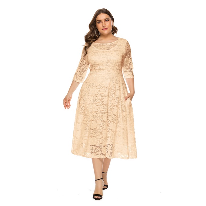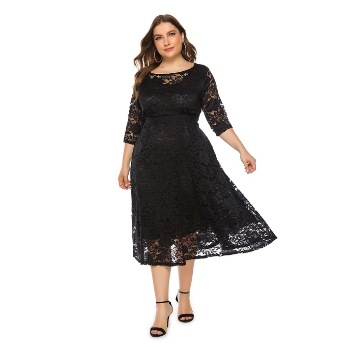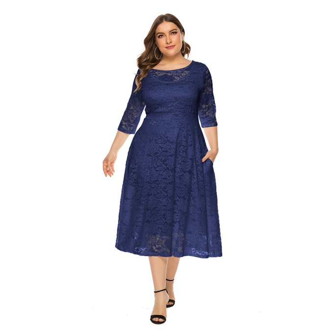 Plus Size XL-6XL Women Evening Dress Mid Sleeve Hollow Lace Sexy Wedding Party Dress SQ0134