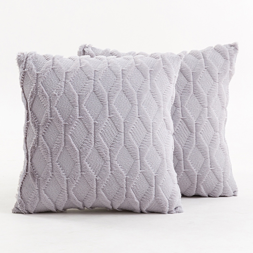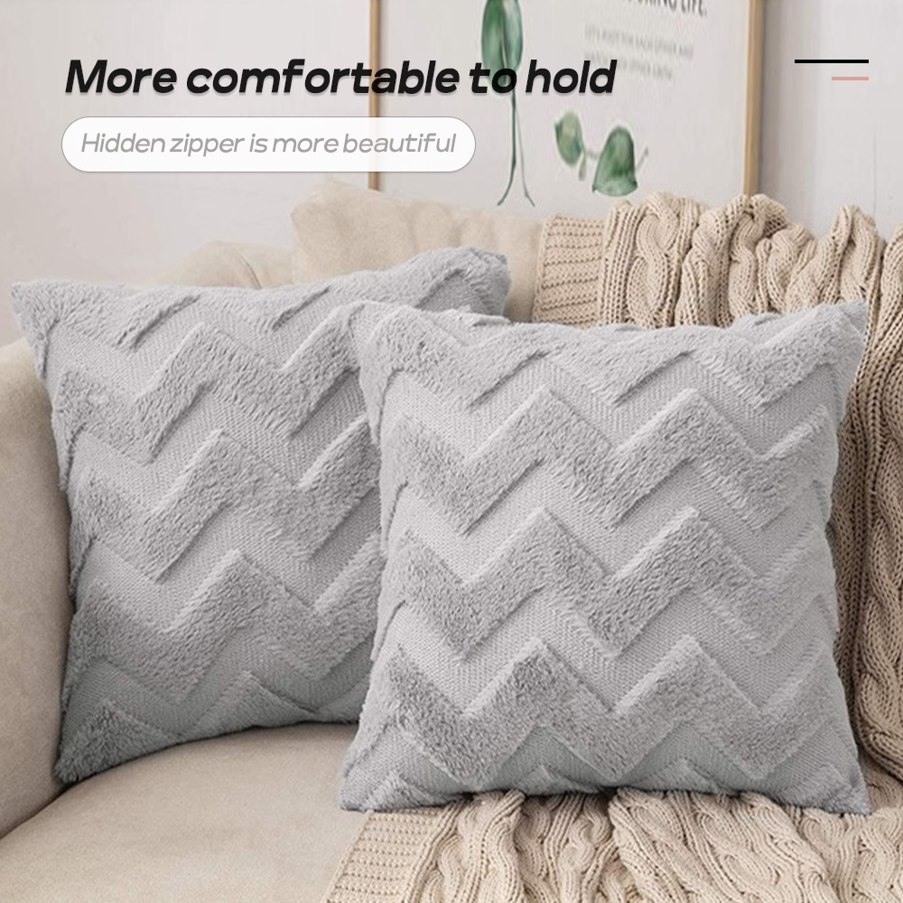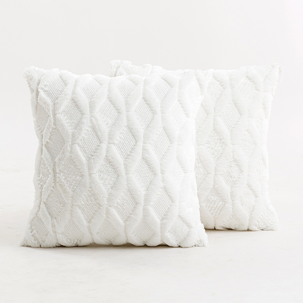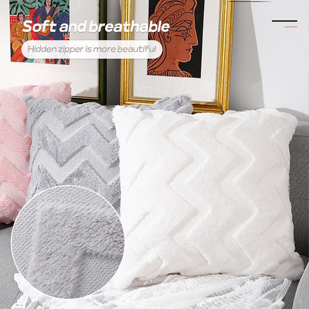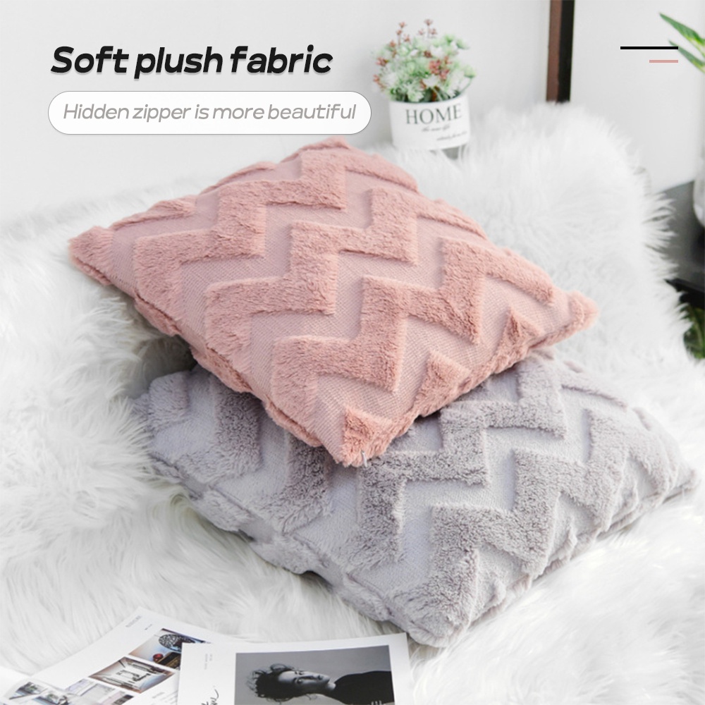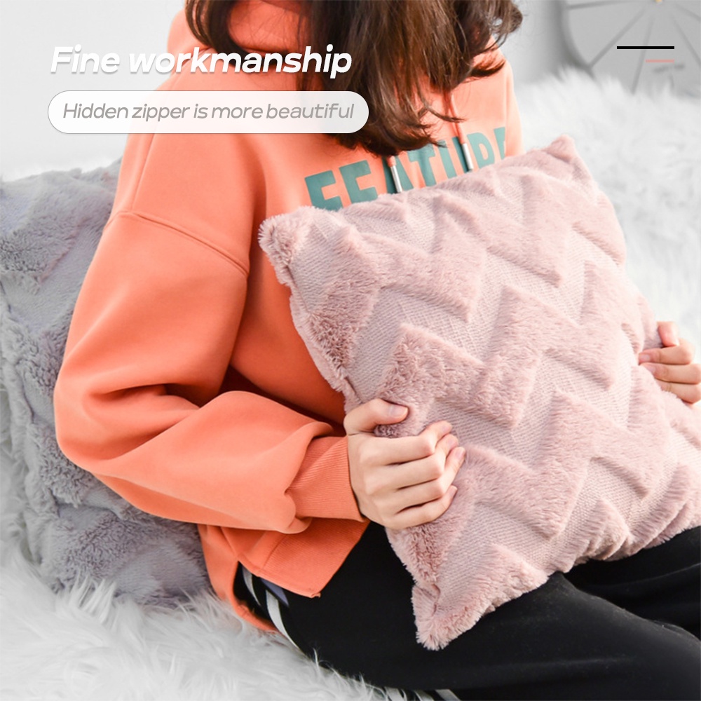 Plush Throw Pillow Case Square Pillowcase Wool Pillow Covers with Zipper for Sofa Bedroom 45x45cm
