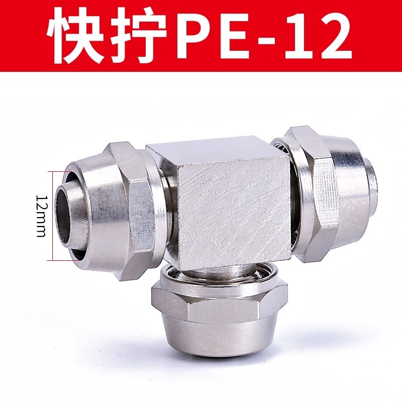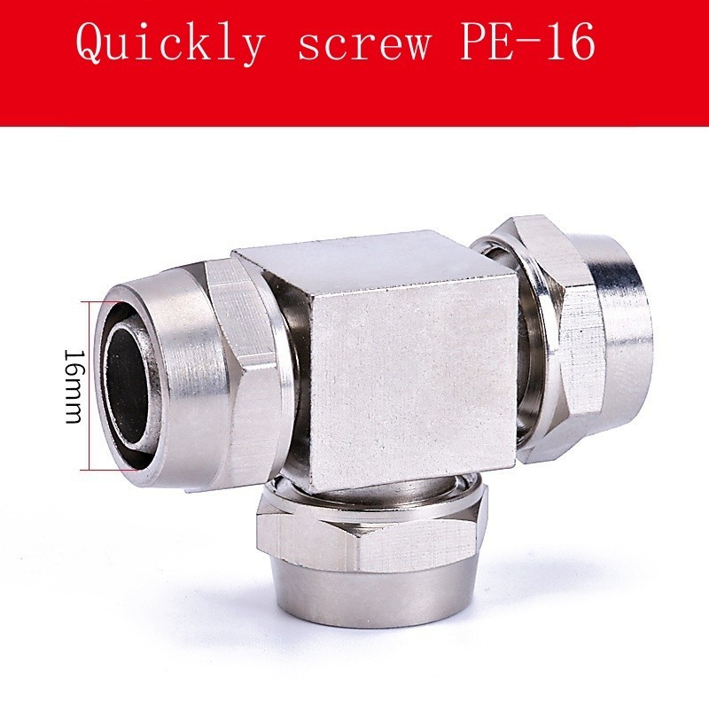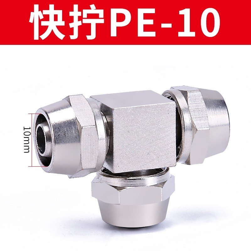 Pneumatic trachea quick-screw joint T-type three-way lock nut lock nut type high-pressure copper nic
