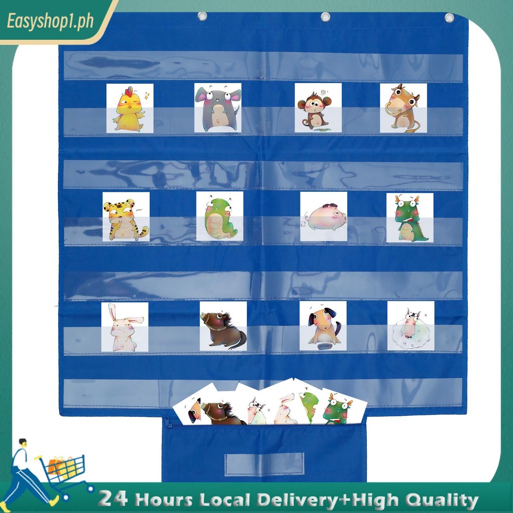 Pocket Chart Sentence Strip Holder with 7 Plus 1 Pockets Large Classroom Pocket Chart Hanging Daily Schedule Pocket Chart 28x28inch Teaching Pocket Chart Educational SHOPTKC8920