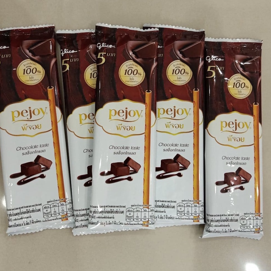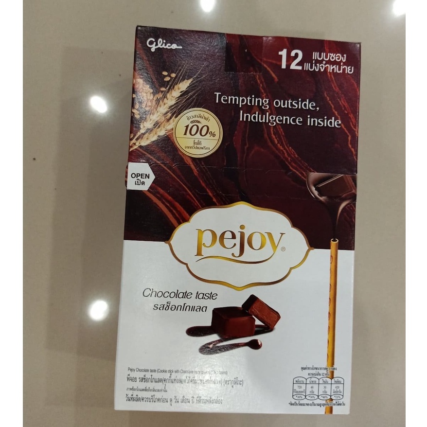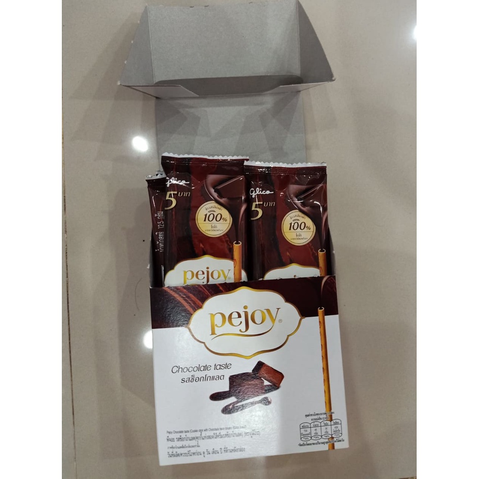 Pocky Glico Pejoy Chocolate Flavor Cookies Stick Filled With Cream (1 Box/12 Sachets) (Pocky 5 Baht)