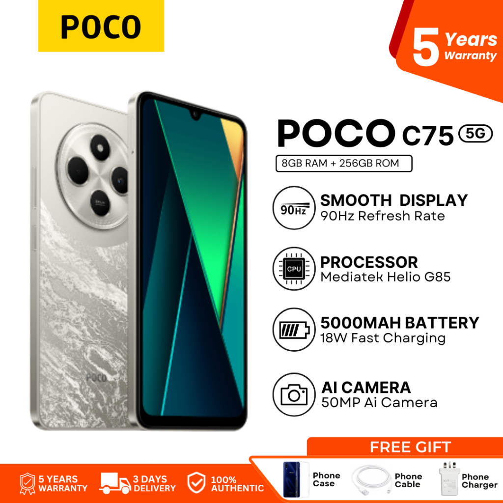 POCO C75 5G Smartphone 8GB + 256GB 50MP AI Triple Camera Smooth 6.74" 120Hz Display Massive Global
