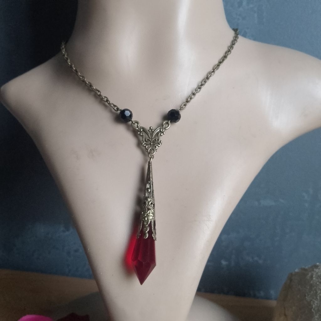Pointed Pendulum Glass Handmade Gothic Antique Necklace