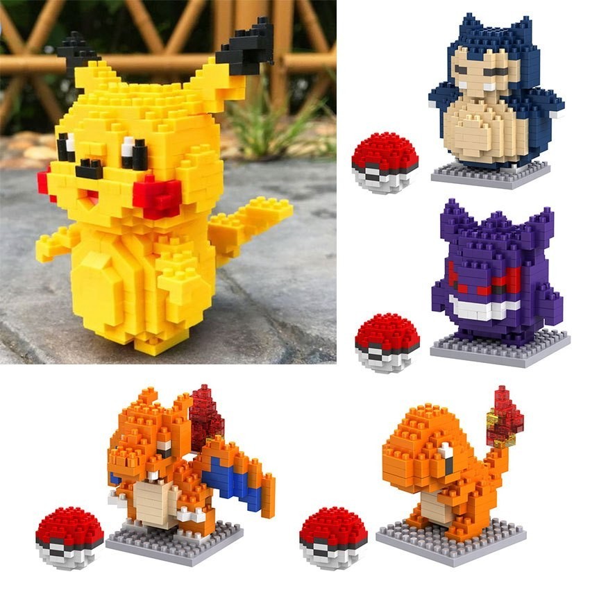 Pokemon Building Blocks Cartoon Small Building Block Assembled Anime Pikachu Action Model Kids Toys