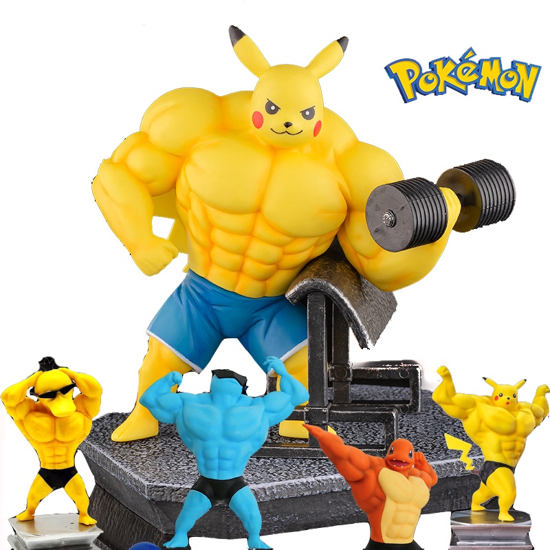 Pokemon Figure Muscle Bodybuilding PVC Action Figure Model Pikachu Squirtle Charmander Bulbasaur Children Gift Car Decoration Model