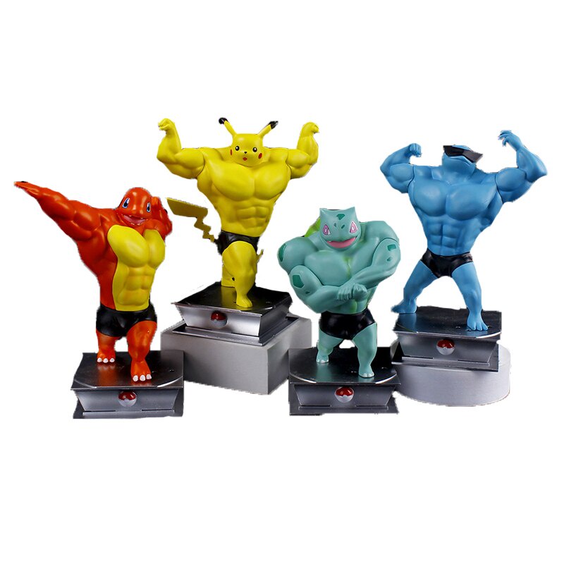 Pokemon Figures Pokemoned Muscle Pikachu Charmander Weightlifting Action Figure Creative Garage Kit Model Toys Gifts for Children
