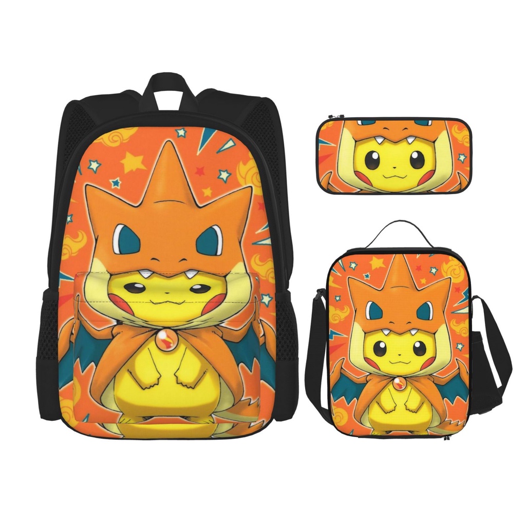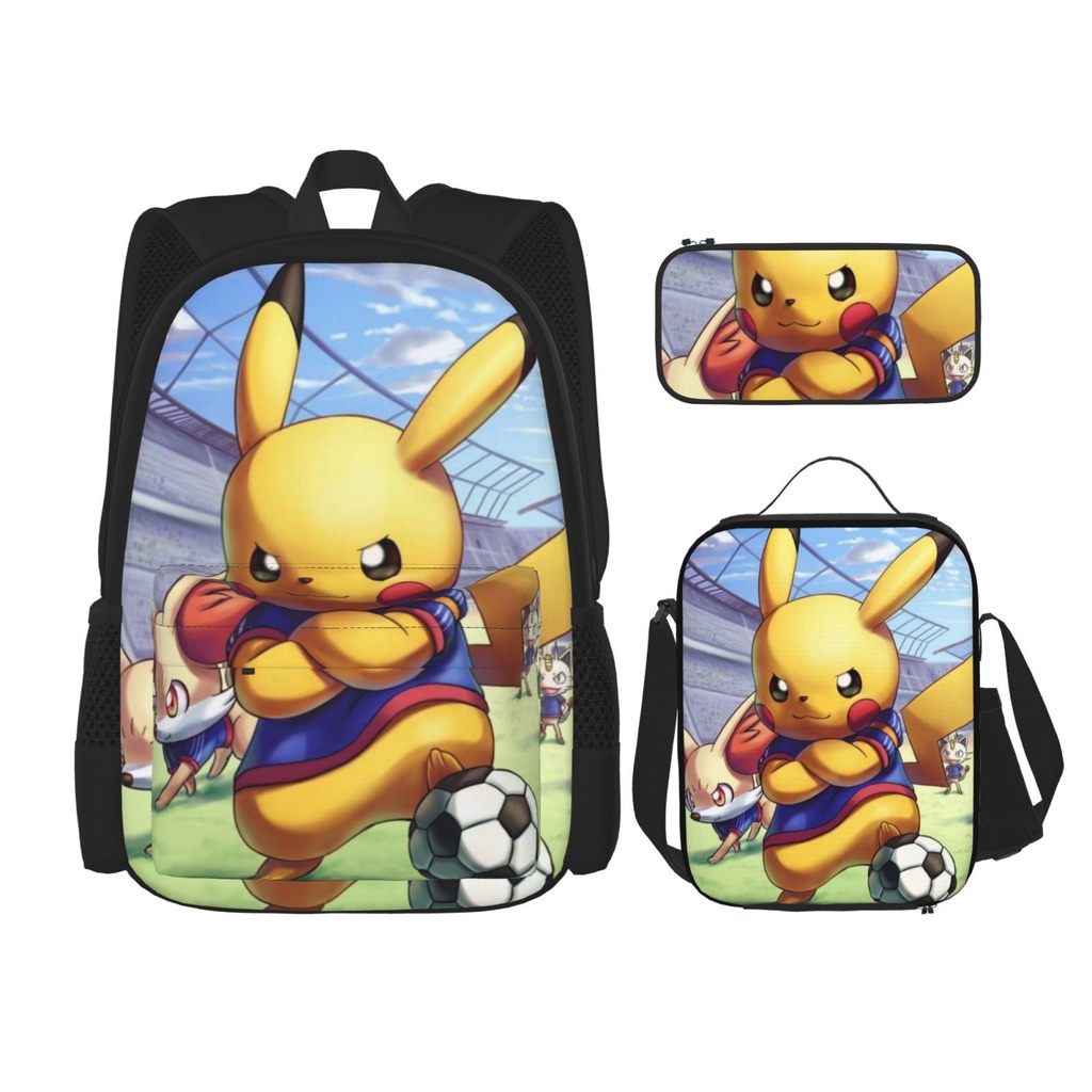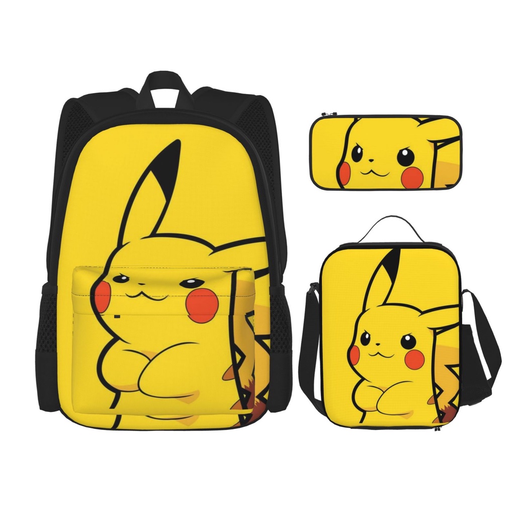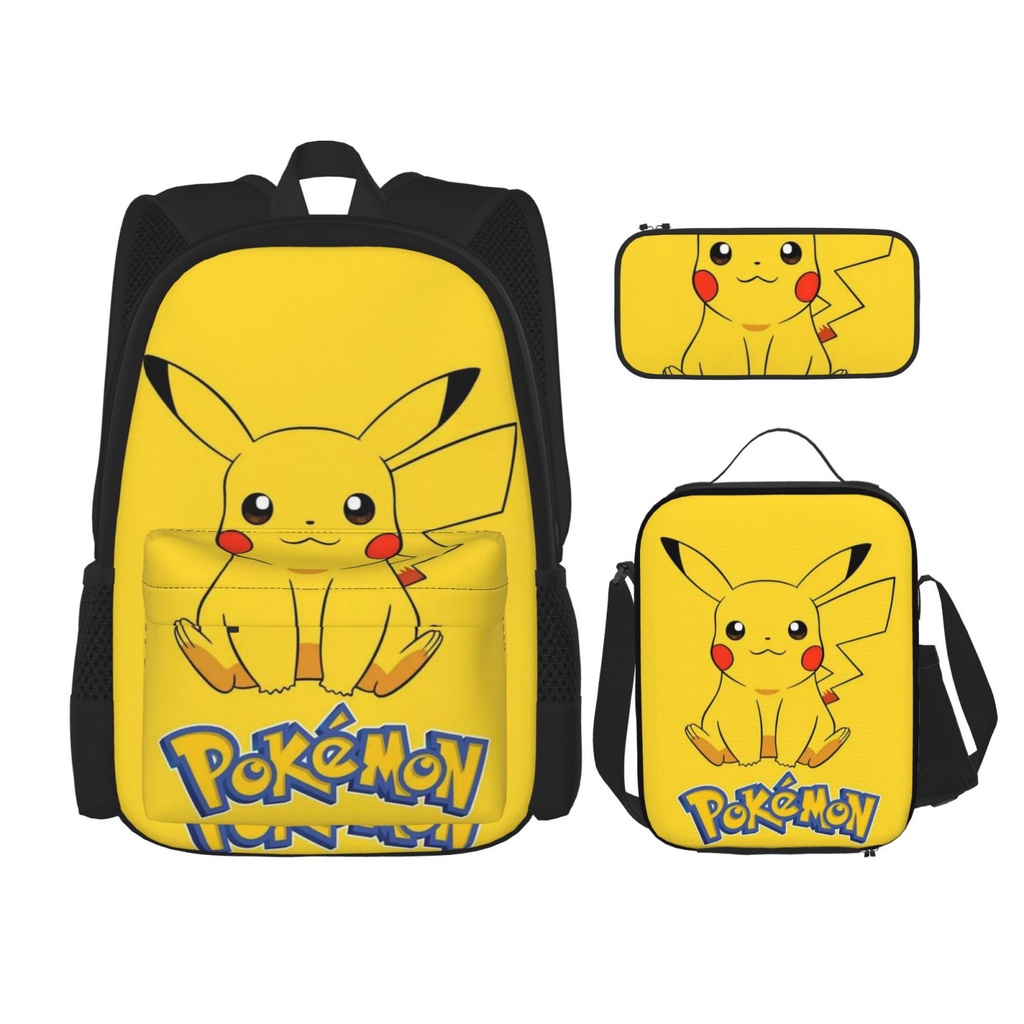 Pokemon Pikachu 3 pieces set Backpack Set with School Book Bag Lunch Box Pencil Case for Boys and Girls