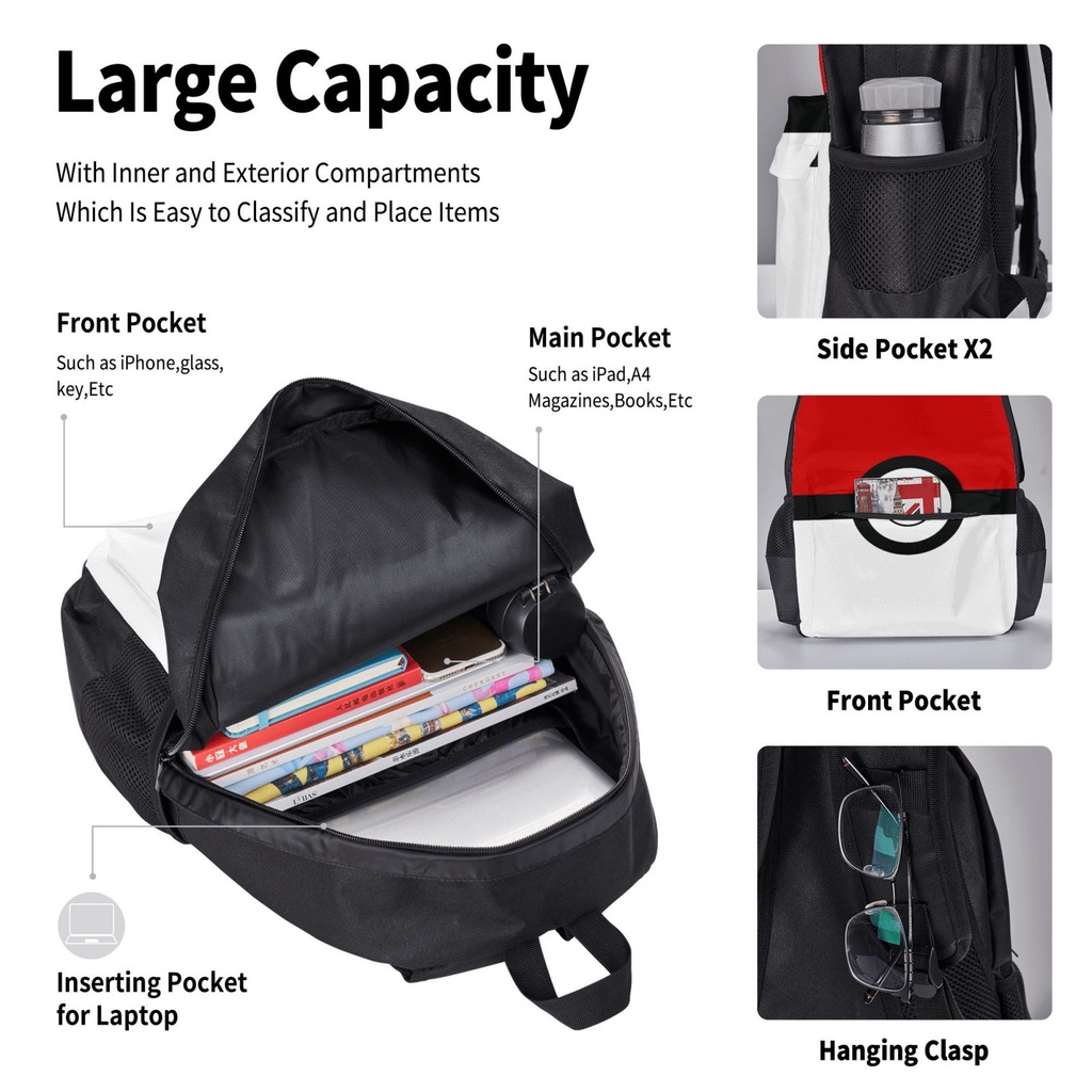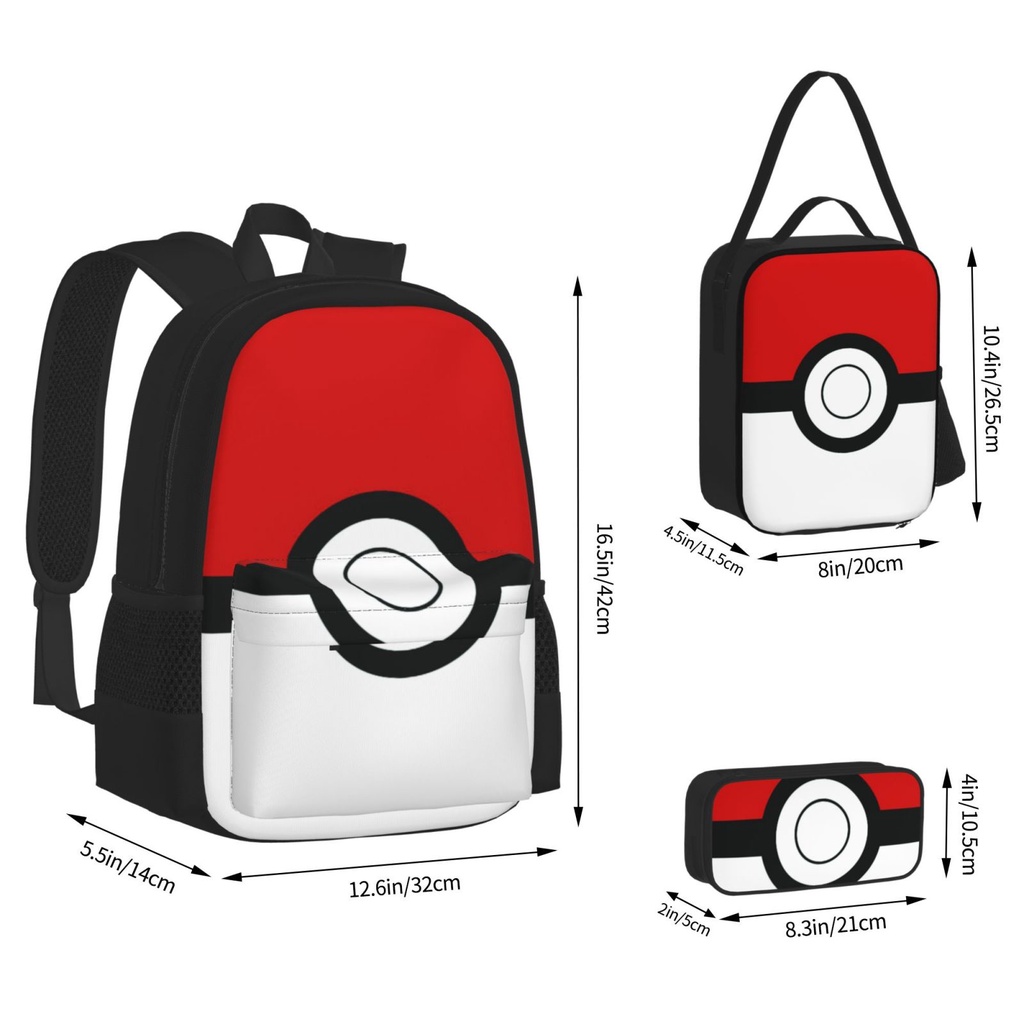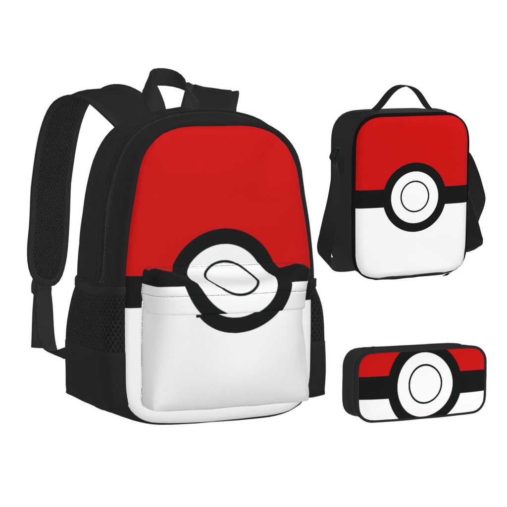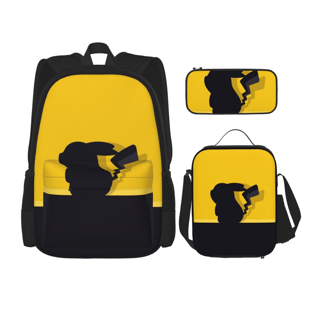 Pokemon Pikachu 3 pieces set Backpack Set with School Book Bag Lunch Box Pencil Case for Boys and Girls