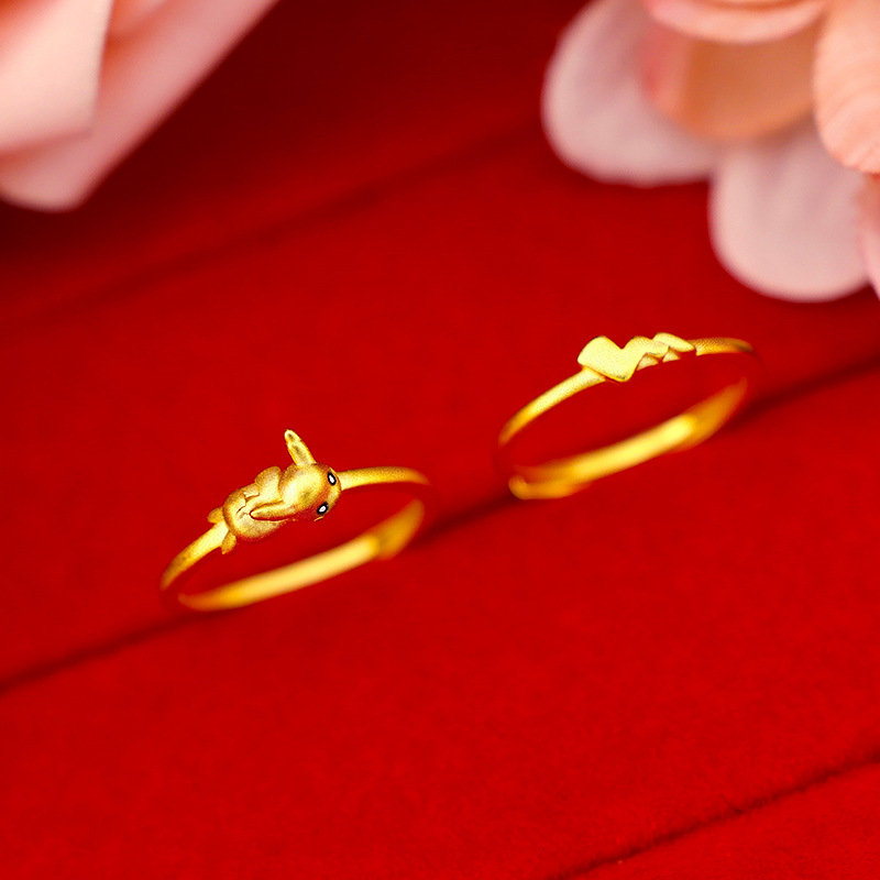 Pokemon Pikachu Ancient Style Gold-Plated Open Pikachu Lightning Ring