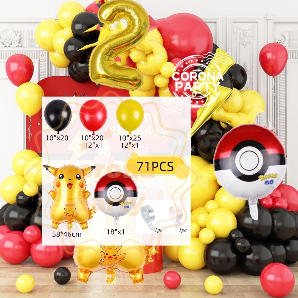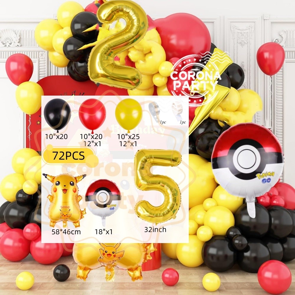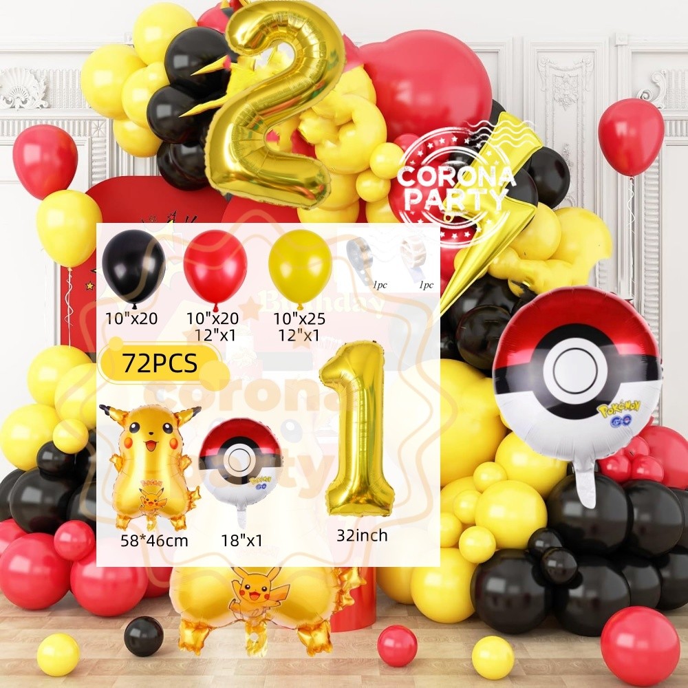 Pokemon Pikachu Balloon Arch Kit Red Yellow Black Latex Balloon Kid Birthday Baby Shower Decorations