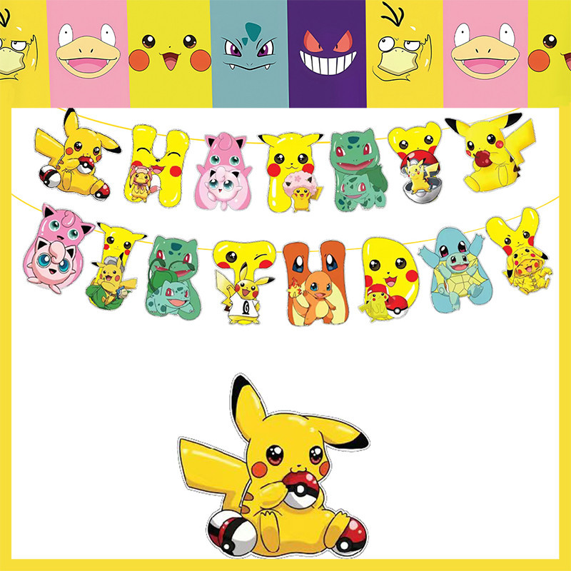 Pokemon Pikachu Birthday Party Tableware Cup Plate Cake Topper Balloon Boy Party Decoration Gifts Supplies